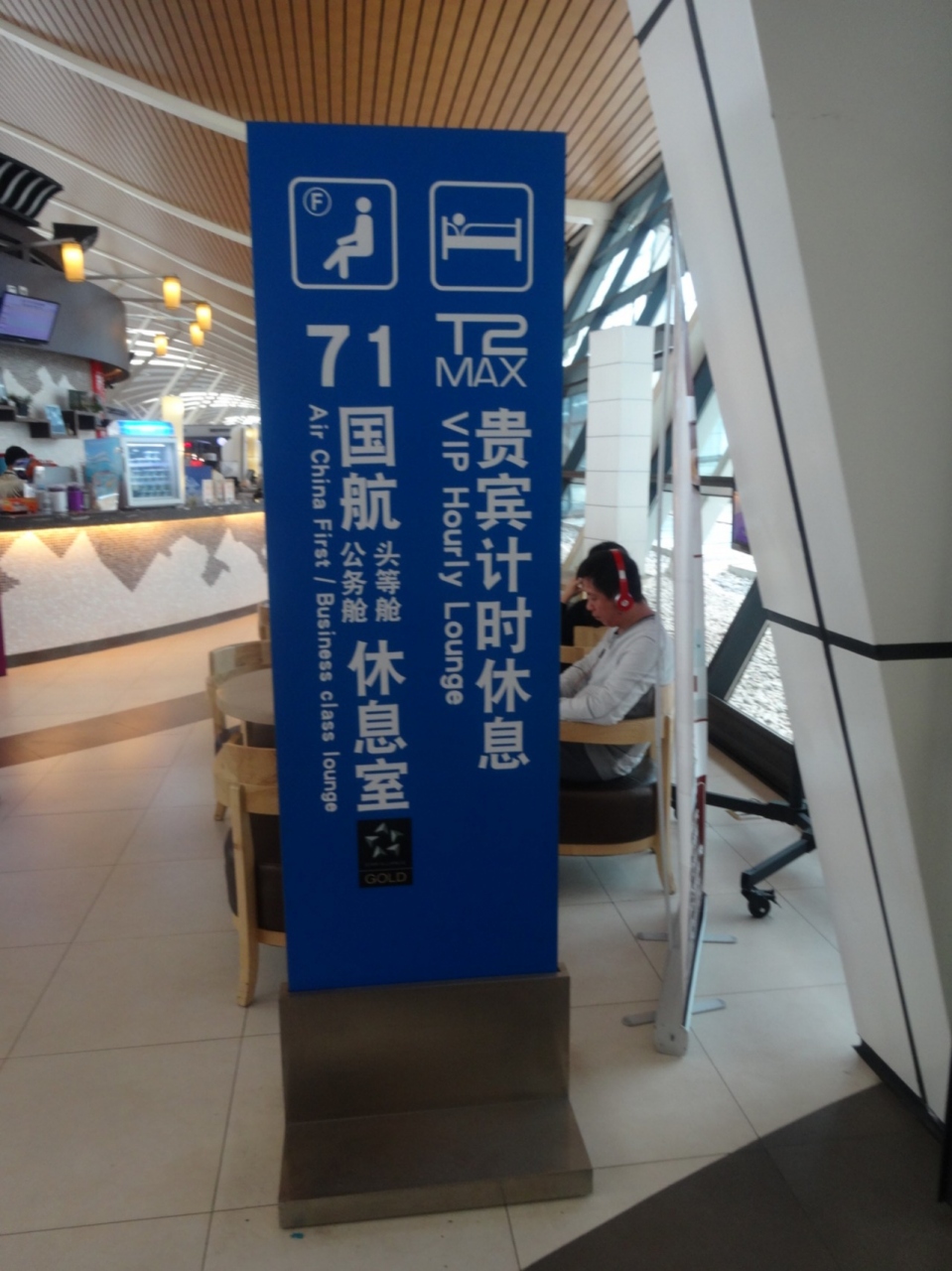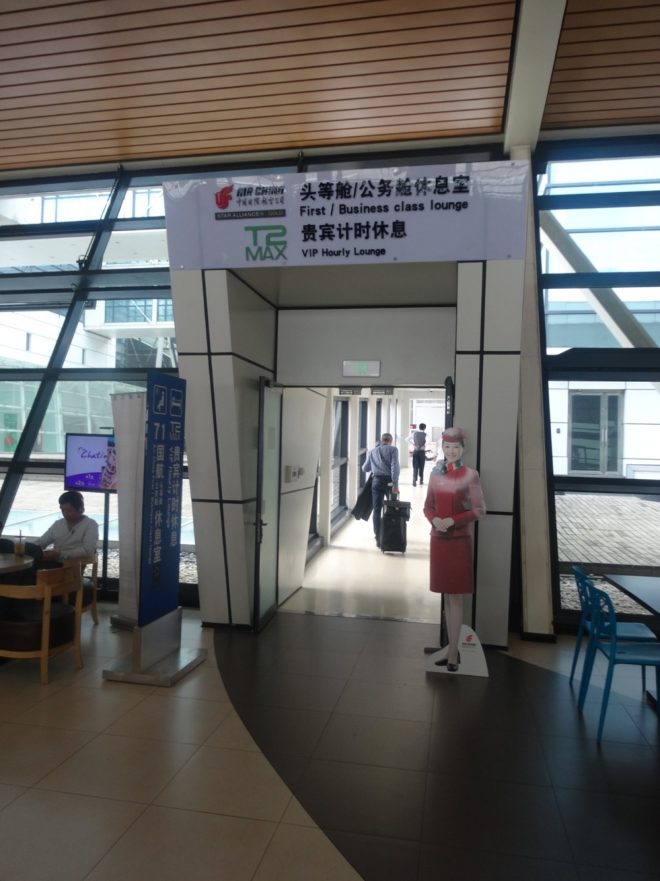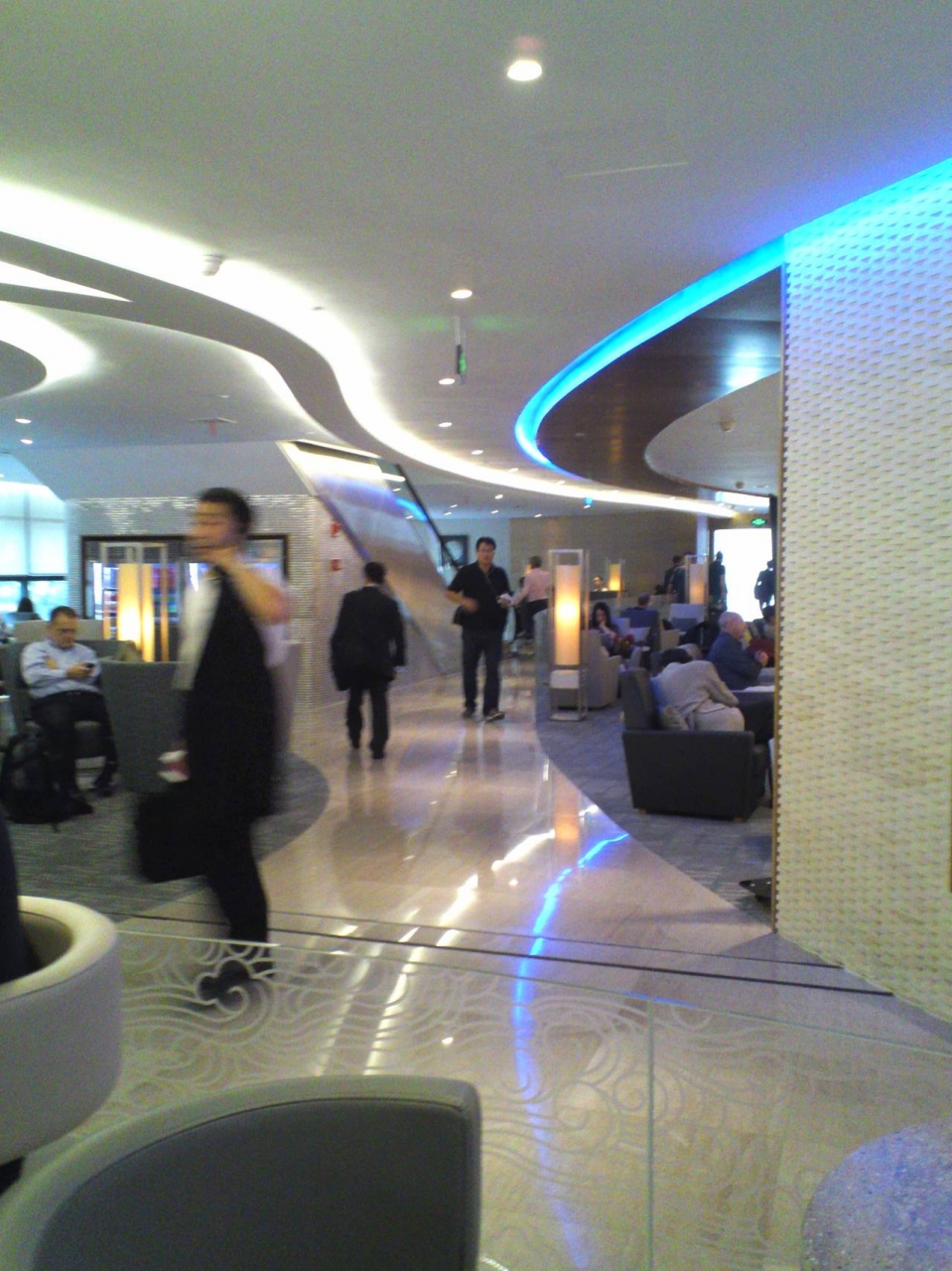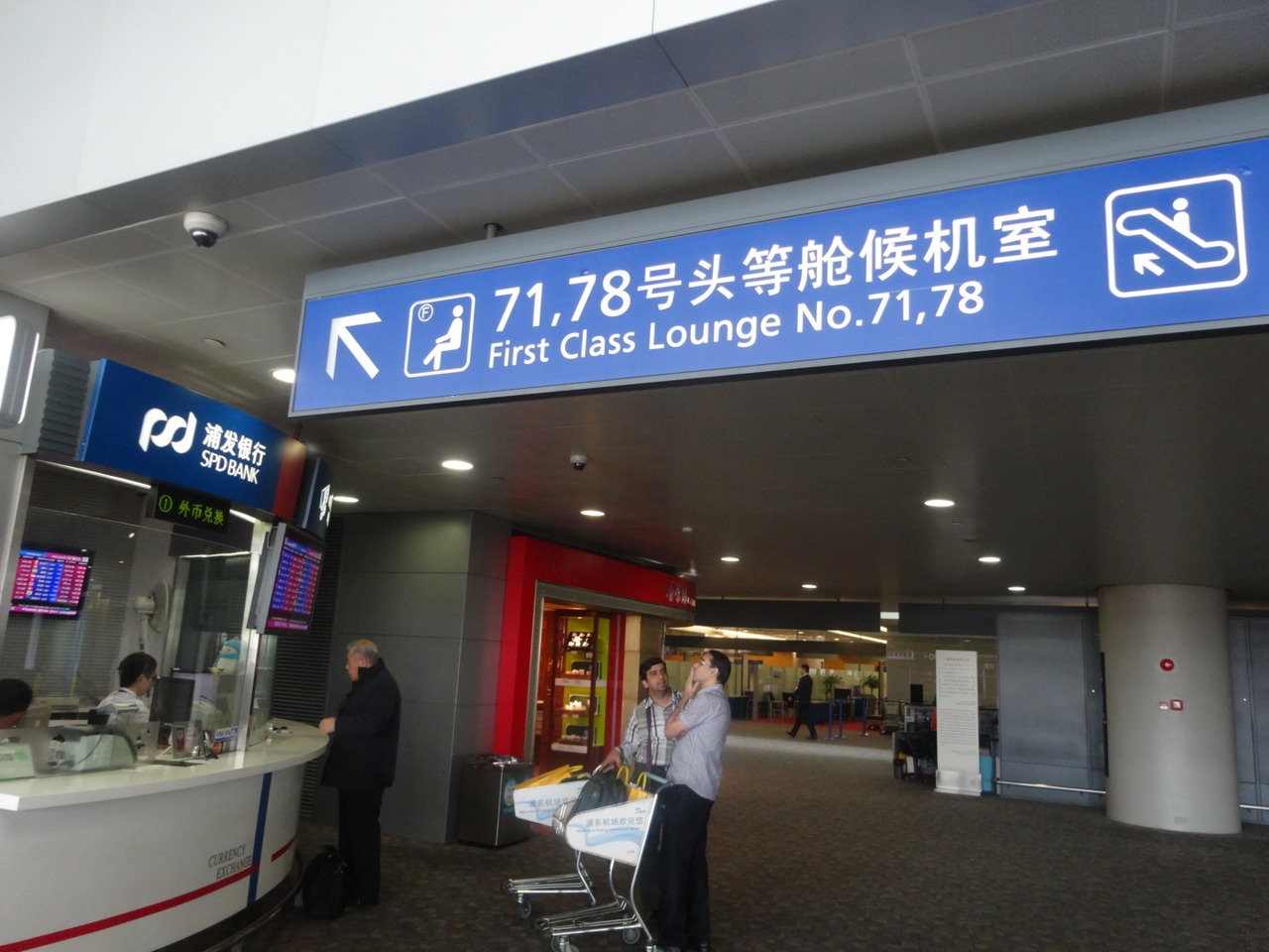 場所は、D-71ゲートのエスカレーターを上がって、バーガーキングの前を通り渡り廊下を行くと、ファーストクラス、ビジネスクラスが左右に別れています。