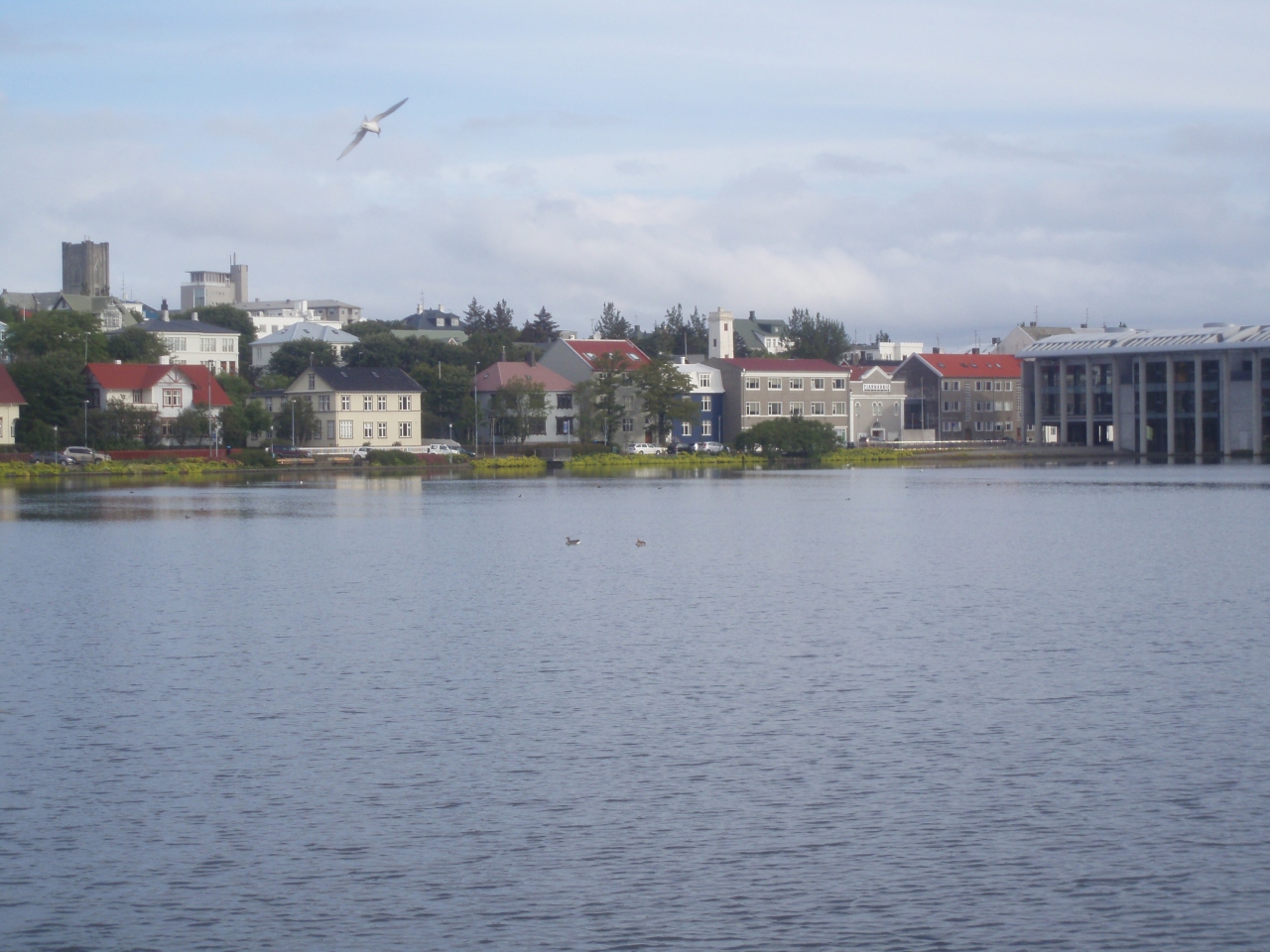 アイスランド5日目。今日は1日、レイキャビク市内の観光です。朝1番で行ったのはチョルトニン湖。花に囲まれ、鳥が泳ぐ、憩いの湖です。面白いのはあちこちに置いてある石像。例えば、ベンチに座っている人の像がある。そのわきに座って記念写真を撮ったりできます。