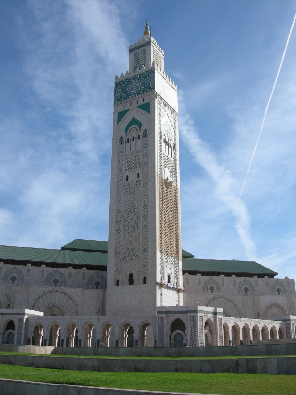 カサブランカの巨大モスクです。大きさは世界第3位、ミナレットの高さは世界1位だそうです。海に面したきれいなモスクでした。礼拝の時は信者が広場に詰めかけるそうです。