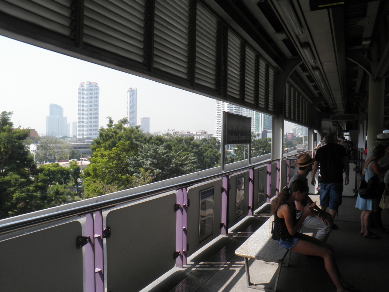 BTSのサパーンタクシン駅は、バンコクのチャオプラヤー川にかかるタクシン橋のそばにある駅です。 この橋をBTSに乗って渡ってトンブリー地区にいってみると、このかなりむこうまでバンコクの街が続いてることがわかります。 観光客にはあまり馴染みのないところだけど、物価が少し安くなるように感じられました。