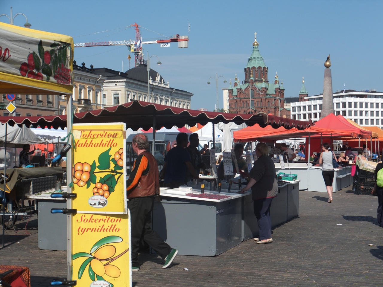 ヘルシンキの町で、港に隣接するエスプラナーディ公園とマーケット広場は、市民の憩いの場で、いつも大勢の人が集まっています。マーケット広場は、野菜や果物を売る出店をのぞいても、簡単な食事をしても、港に出入りする大小の船を眺めても、とても楽しいところ。観光にとてもいいスポットです。