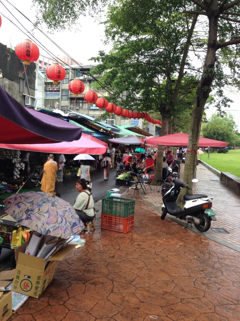 泊まったホテルの近くにあったので、早起きして、のぞいて来ました。道の両側には所狭しと野菜やら魚介類などの食材が並びます。観光なので食材はいらないので自分たちはおこわやちまきを買って道端で食べました。ビニール袋に入れられたおこわでしたが、美味しかったです。公園では、足の角質取りがお店の半額程度で行われていました。台湾のリアルな生活が見れた気がします。