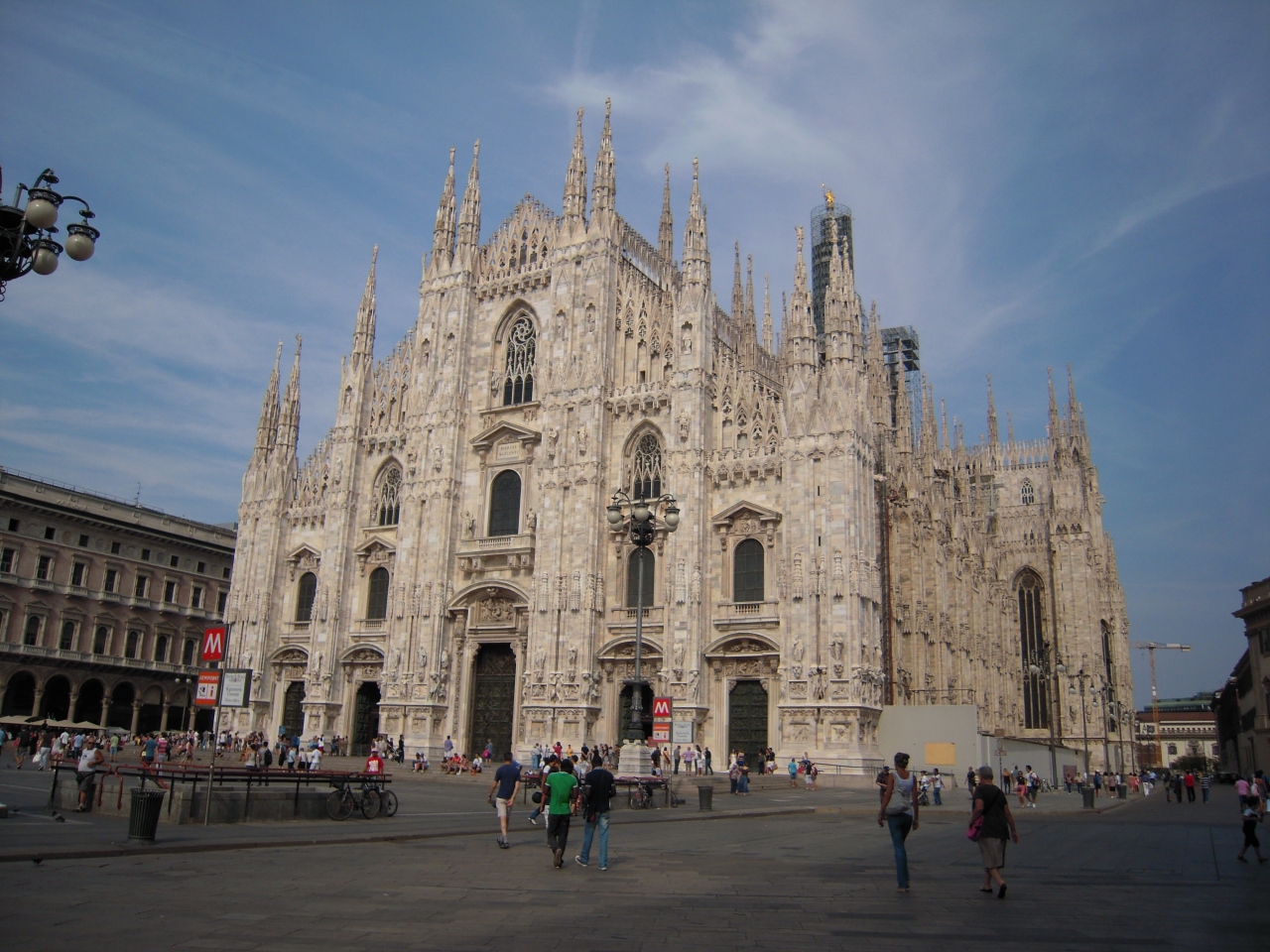 まずミラノについて初めて見た観光地がここでした。やはり初めて見た大聖堂は本当に荘厳ですごいなと正直思いました。大聖堂の前の広場には人がたくさんいてハトの餌やミサンガを売る人がいましたがそれほど危険な感じもせず、のんびりとした雰囲気で皆さん写真を撮っていました。中に入ると薄暗いですが壁一面のステンドグラスがありとても美しく、一枚一枚全て違う絵だったことに驚きました。
