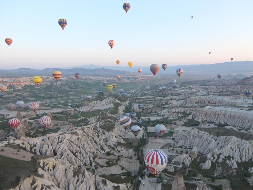 エジプト/ここカッパドキアと立て続けに事故が起きた為、気球観光に参加する事自体賛否両論あるかもしれませんが、私自身は参加して正解だったと思います。世界遺産の奇岩群を空から眺める景色は圧巻、気球/朝日に染まった空/奇岩群のコラボは絶景です。