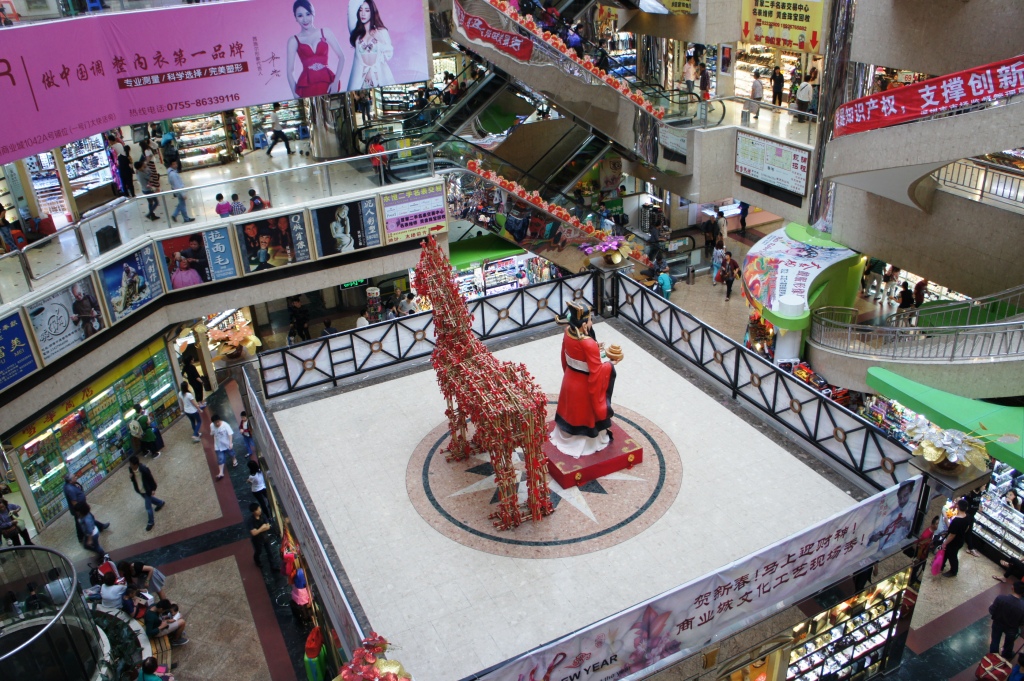 深せんに、香港から入る際の玄関口、羅湖駅を出てすぐの右側にあるのが、巨大ショッピングセンター羅湖商業城です。大きなブランドショップが並ぶ香港のSCをイメージしていたのですが、入ってみると、これが全然、別物。中央がどーんと吹き抜けになって豪華そうなのですが、各フロアに、とにかく小さな店が並ぶのです。アクセサリー、洋服、時計など、値段を見ればすぐに分かる「本物の偽物」だらけなのです。露店をビルの中に押し込めたって雰囲気。店の前にいるのは、妙に若い女の売り子さん。どなたもあまりご機嫌がよさそうではなかったのは、少し気になりますけどね。偽物遊びに徹するのなら楽しいけど。