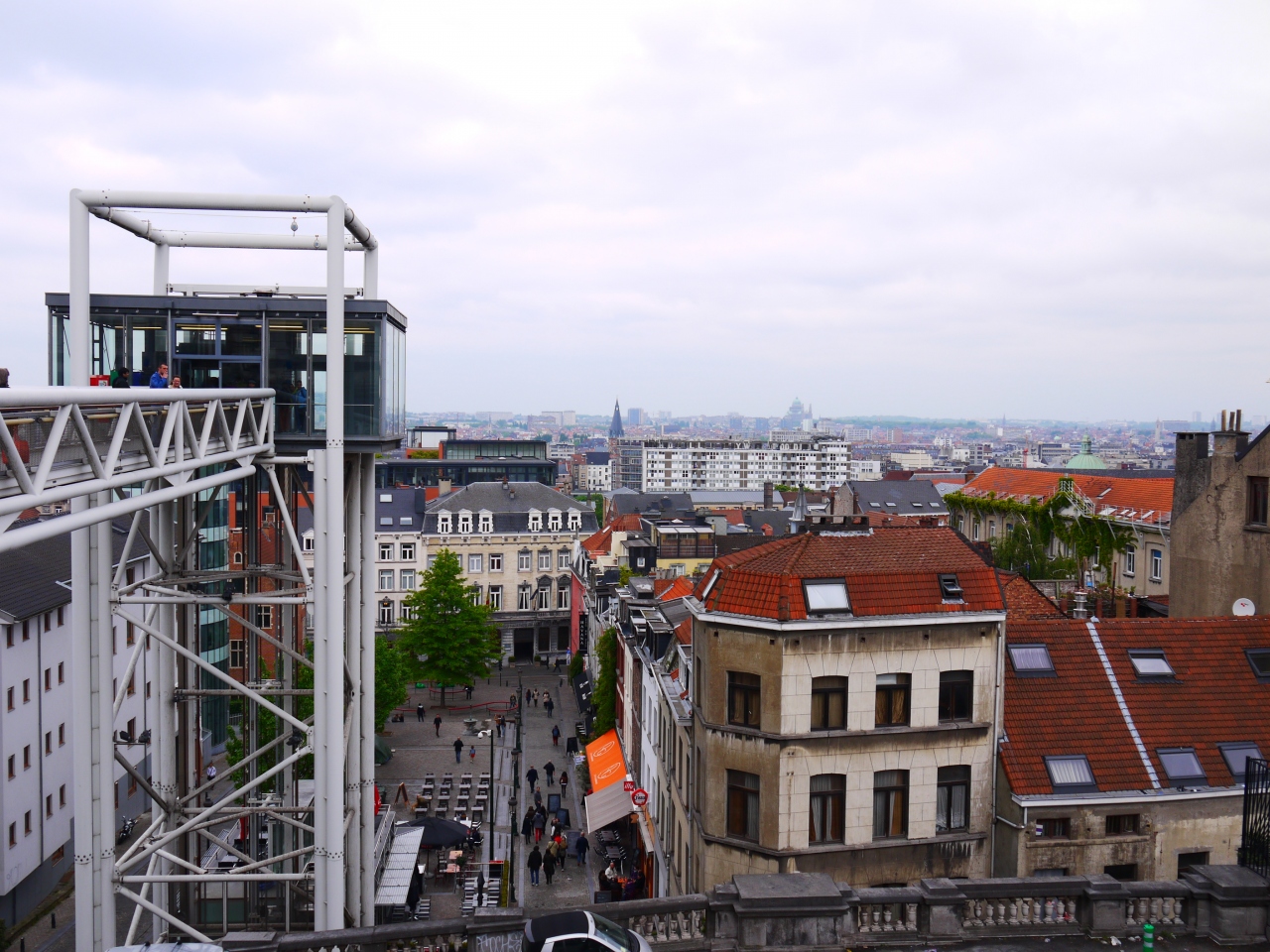 西側にあるエレベーターへの橋からは市庁舎がちょっとだけ見えます。