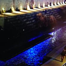 以前はドブ川だったような場所ですが、今は整備されていて、夜は、ライトアップされていて綺麗でした。日本人と違い韓国の方は、公園やこのような場所で、デートをするのが定番みたいです。