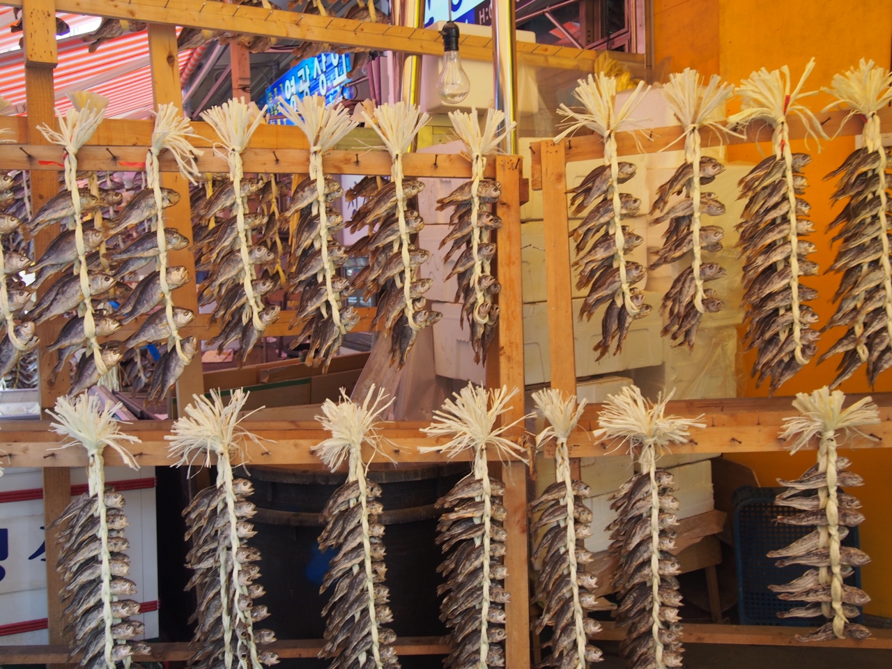 海産物系の干物、乾き物がたくさんありました。海産物系が多いので、匂いと蠅がたくさんいますが、私は、かわはぎの干物をゲット。