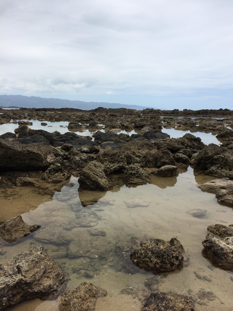 岩と岩の間に海水がたまっていて、小さな魚が結構泳いでいました。