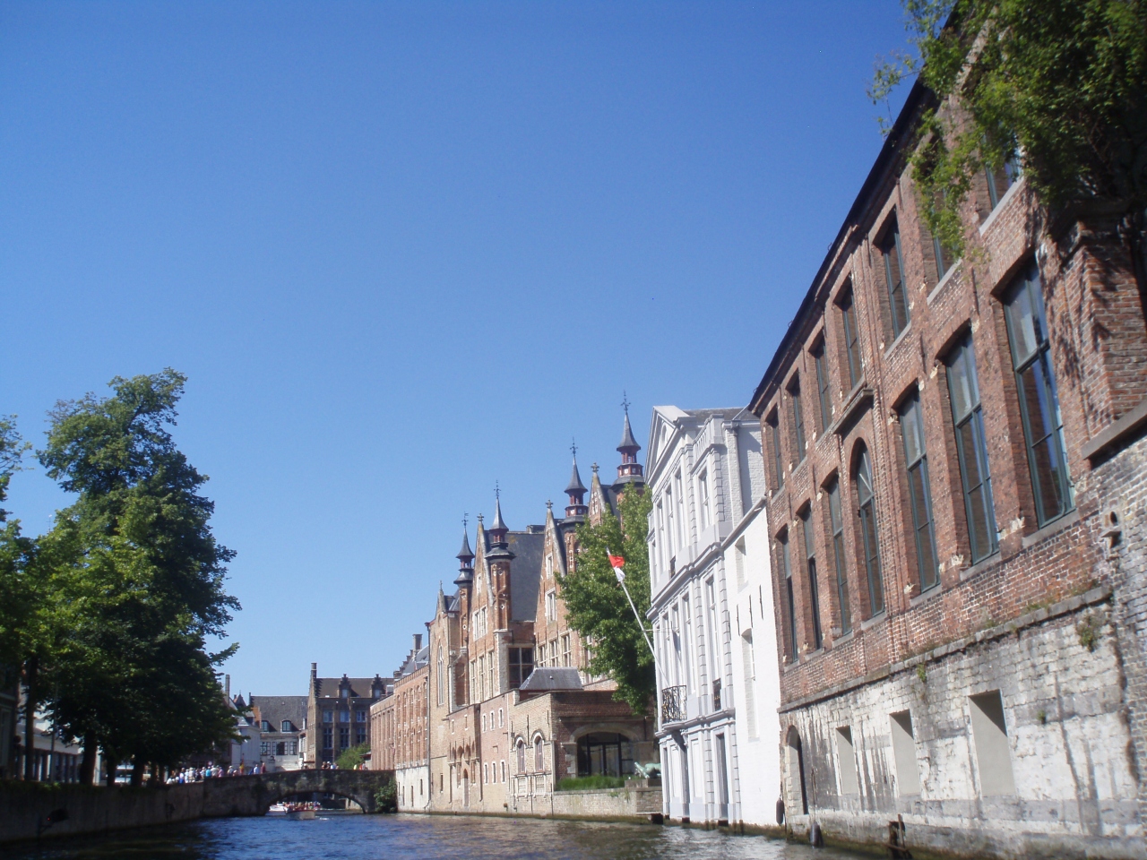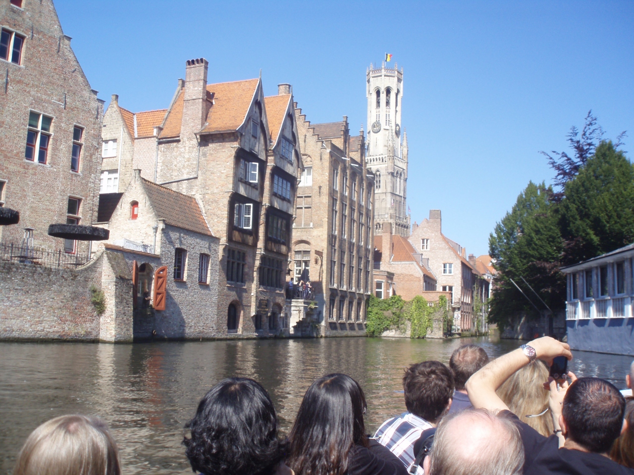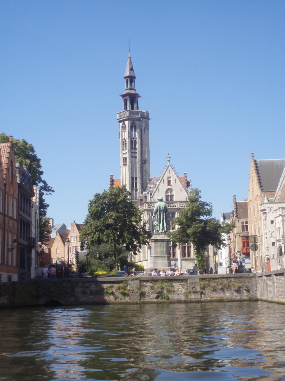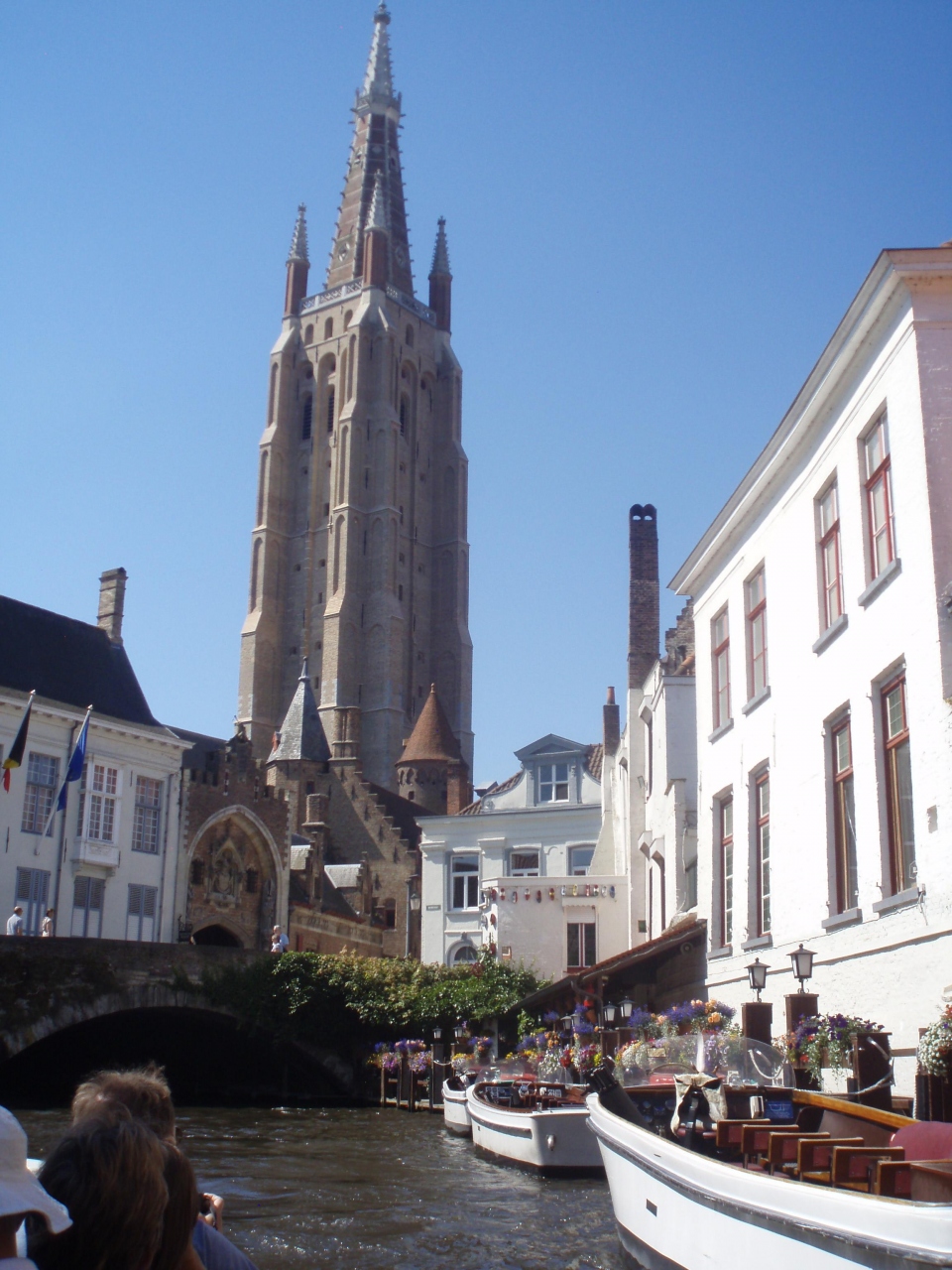 ベルギー3日目はブリュッセルからブルージュへの日帰り旅行。ブルージュはベルギーの古都。運河の町で、この町の一番の楽しみ方は運河クルーズです。私はブルージュは2度目ですが、前回はひとりでした。前回のブルージュの印象は「美しすぎる町」。訪れてきているのは家族連れとカップルばかりで、一人旅だとさびしいほどでした。で、気後れして、クルーズはしませんでした。今回は家内と一緒だったので、到着後すぐにクルーズへ。青空の下、古都の景色を楽しみました。