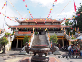 ベンタイン市場とタンソンニャット空港の間くらいにある仏教寺院です。入場無料ですが、門前の線香売りがかなりしつこいです。本堂の中には金色の大仏があります。本殿の右にある鐘楼は日本から寄贈されたもの。鐘に日本語の銘があります。