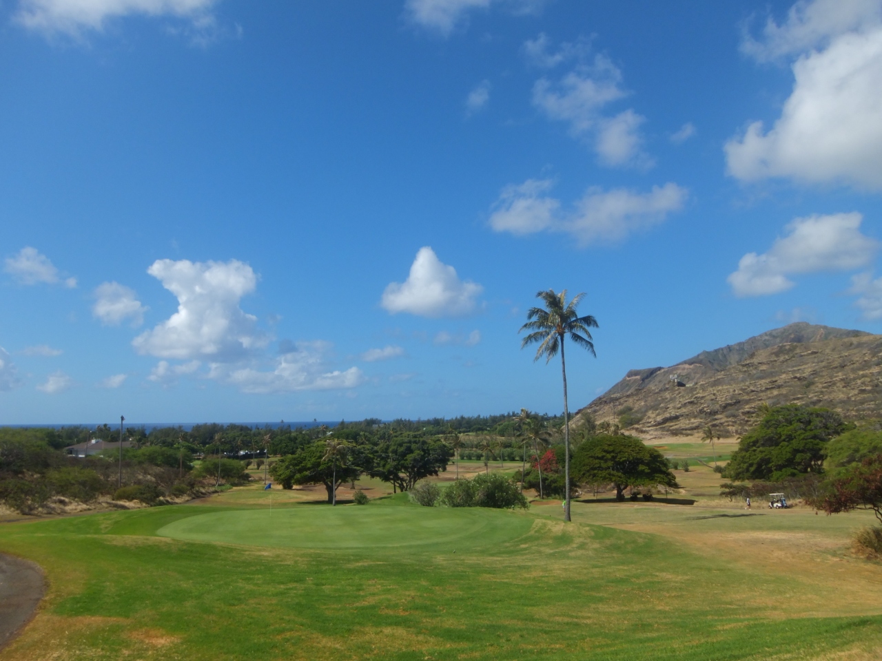 ハワイの東の方に立地しており、海もほど近いので、コース中に少し高台のポイントに来ると海も見えて、海に向かって打下ろすようなコースもあり、とても気持ちのよいコースです。