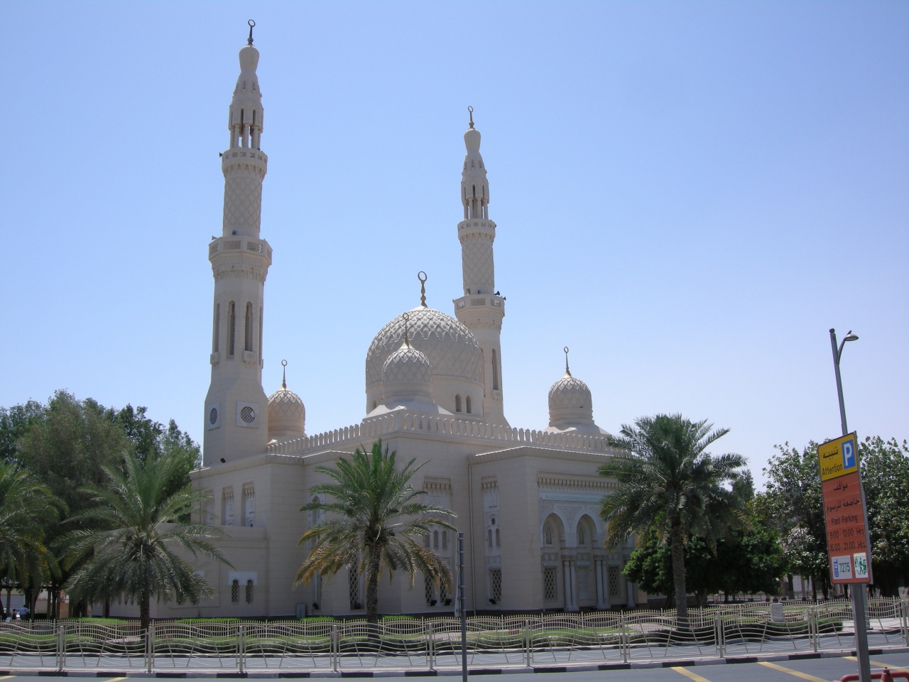 モロッコ観光の経由の関係でついでにドバイを観光しました。団体ツアーだったのでバス移動で名所を巡ります。トイレ休憩のためにこのモスクの前に止まって、写真を撮って向かいのショッピングモールに行きトイレを済ませました。