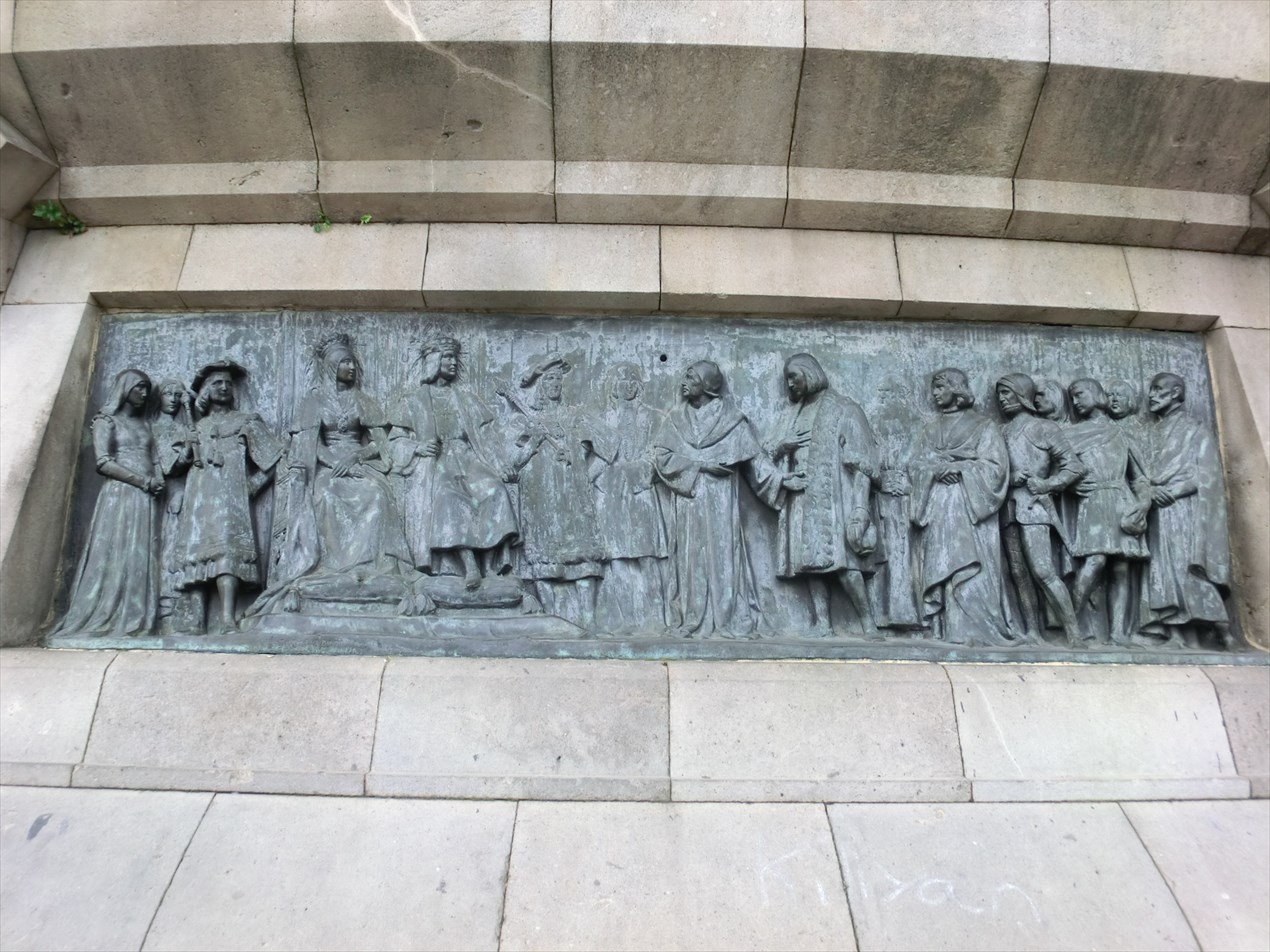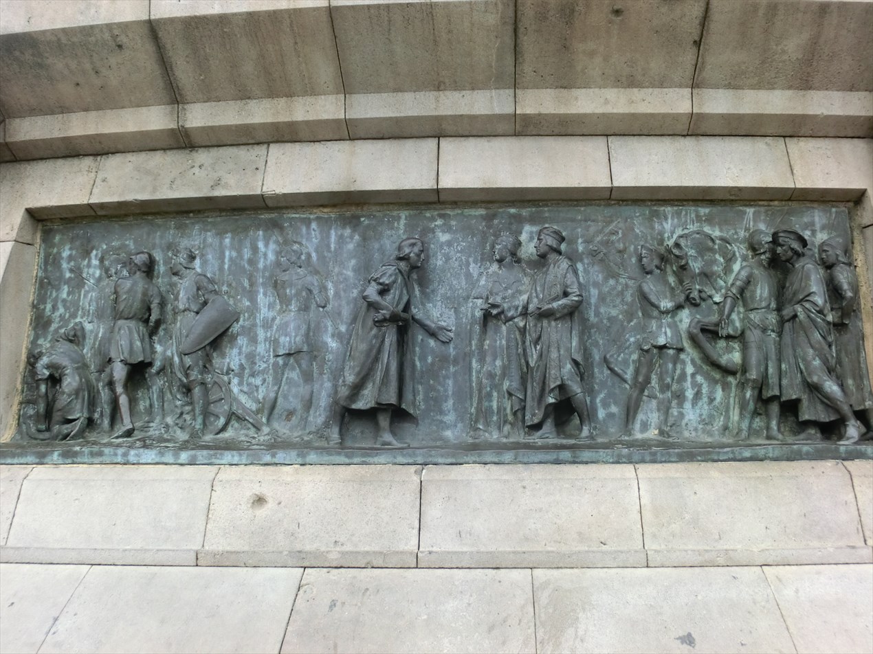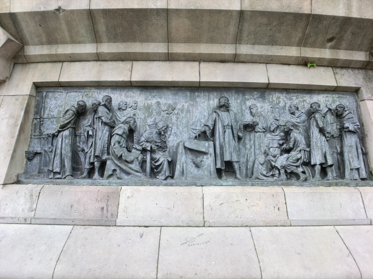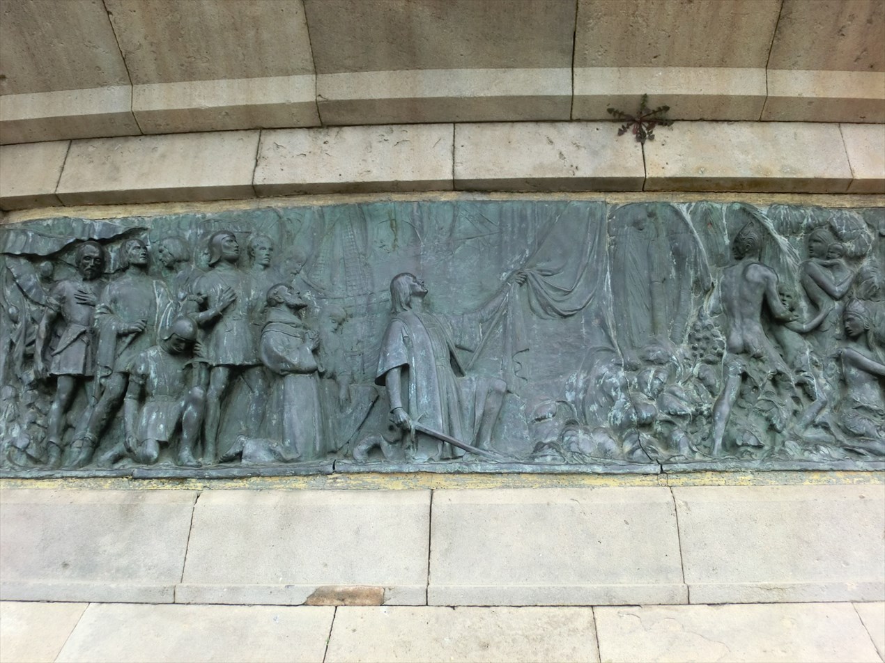 その台座部分(八面)には、新大陸への第一回航海にまつわる場面(レリーフ)、人物(彫像)、場所(紋章)が飾れています。こちらも見ておいたほうが良いでしょう。
