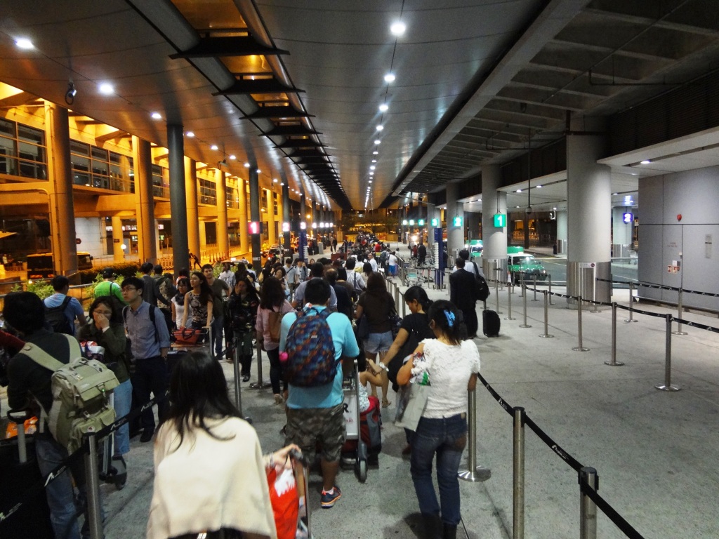 初めて香港に訪れたとき、入口は世界で最も離着陸が難しいといわれた 啓徳空港でした。民家の軒先をかすめるように飛ぶと評判でした。さて、18年ぶりに訪れた香港。空港は1998年にオープンしたチェクラップコク国際空港に変わってました。もちろん、ガラス張りの建物の巨大な空港です。昔、どんな風に着いたかはもう憶えてませんが、自分で知ってる限りでいうと、上海やソウルにどことなく似た感じがしました。さて、空港は広くてきれいなのはいいけど、喫煙室が極端に少なく、どこにあるのか、さっぱり分からないのには困りました。それと、サンダーストーム、いわゆる雷雨によりJALが大幅に遅れ午前1時ごろに着いた結果、空港内は各国からの到着便客でごった返し、タクシー乗り場も長蛇の列でした。もちろん公共交通機関もなく、ホテルにたどり着けたのは午前3時。これにはまいりました。深夜のせいか30分ほどで着いたのは良かったけど。