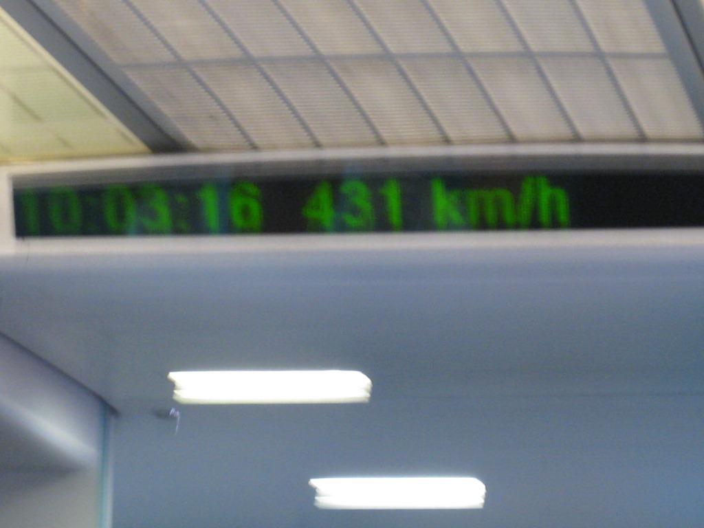 静かに走り出して、どんどん時速を上げてすぐに最速431km/hを表示しました。