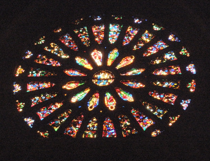 そして、中に入って再び惚れ惚れ。まずは、大き目の窓に嵌め込まれた夥しい数のステンドグラスを通して入ってくる、その時々の光を楽しみ、それから個々のグラスを眺め歩いて楽しむ。