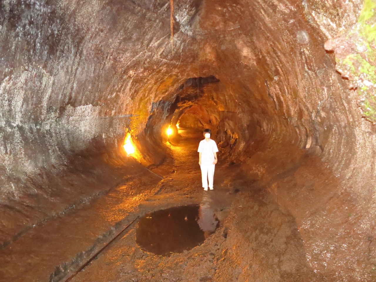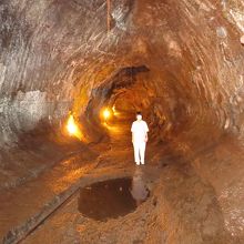 ラバ チューブ入口の案内板の横を下りて行くと写真で見たことのあるラバ チューブが出て来ました。結構な迫力と雰囲気が有りました。少し水が垂れているところがよけいに雰囲気を出しているように思いました。ただ、少し奥に入ったかなと思ったら直ぐに出口でした。