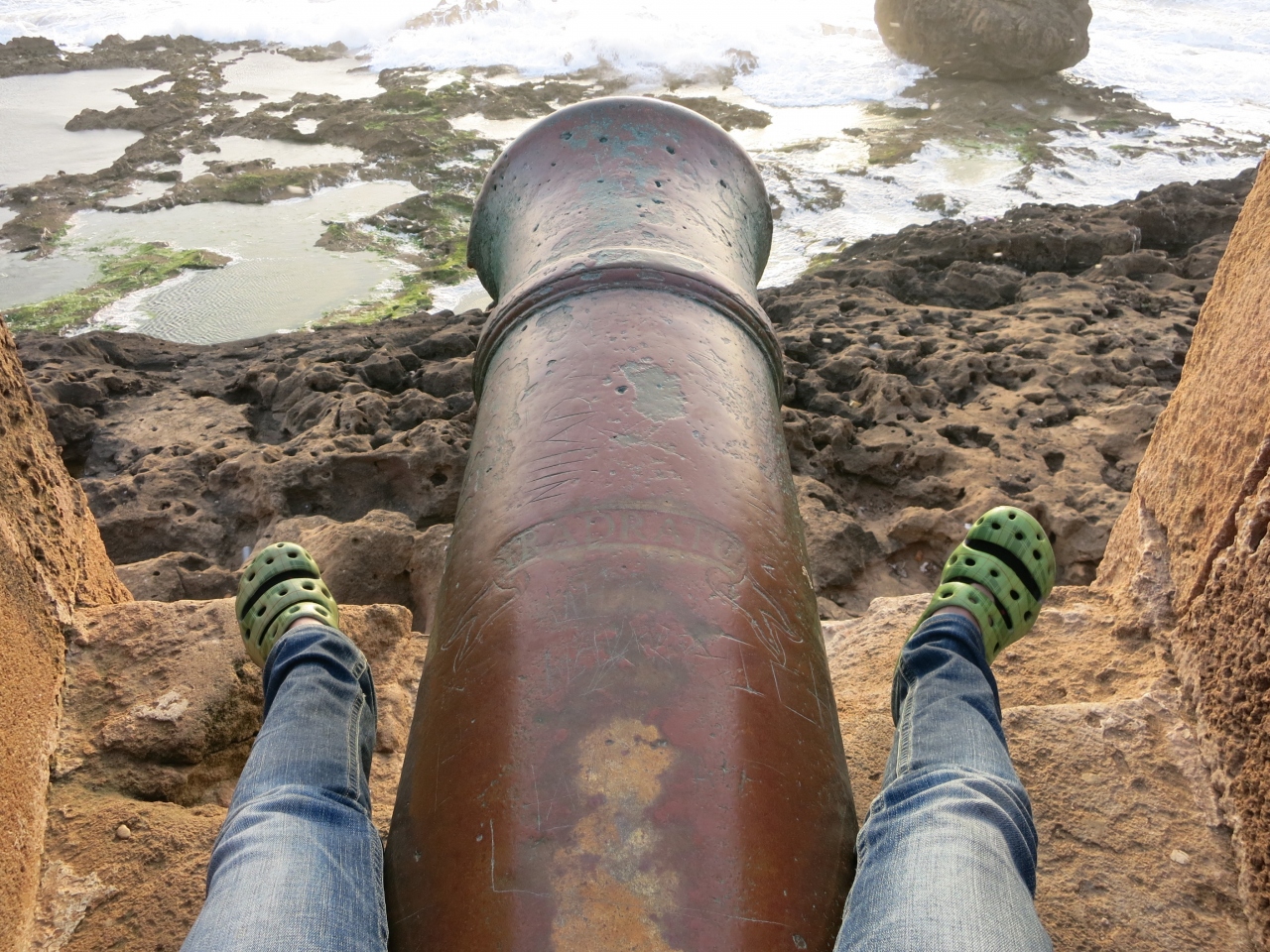 海はまるで東映の最初のシーンのようなザッパーン!!!な風景ですが、大砲の上に乗ってひたすら夕日が沈むのをここで待ってました。