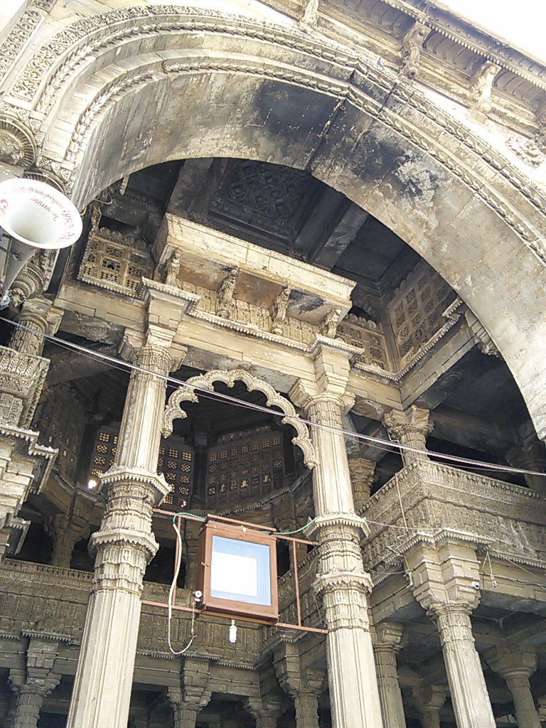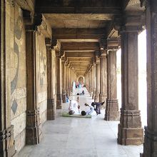 アーメダバード最大のモスクだけあってとにかく大きいです。中庭はまるで広場のよう。礼拝堂の中も圧巻、これほど必要なのかと思えるほどの柱がびっしり並んでいます。周りを囲む回廊は絶好の涼みスポットになっていて見学者や近所の人達がのんびり過ごしていました。