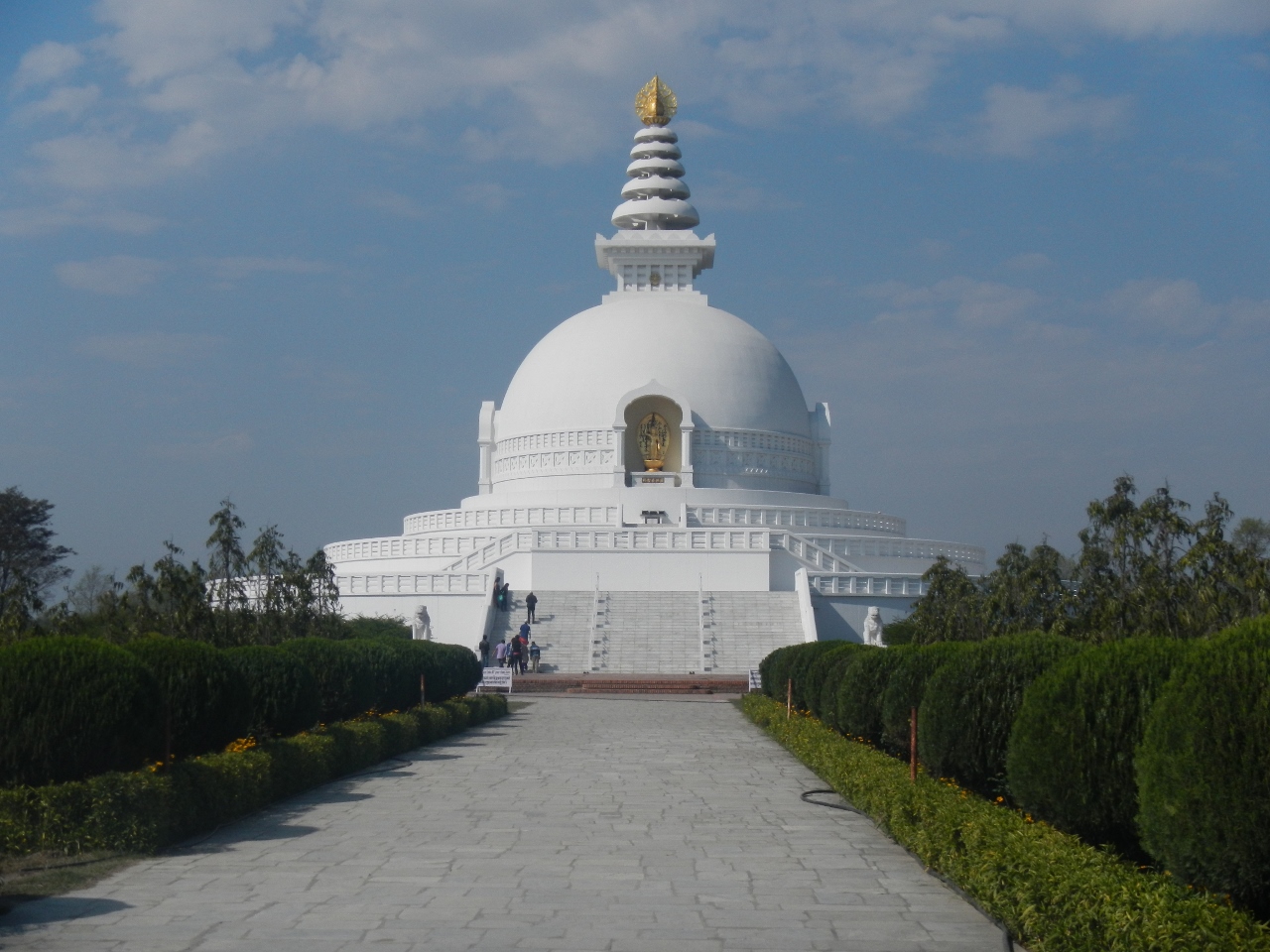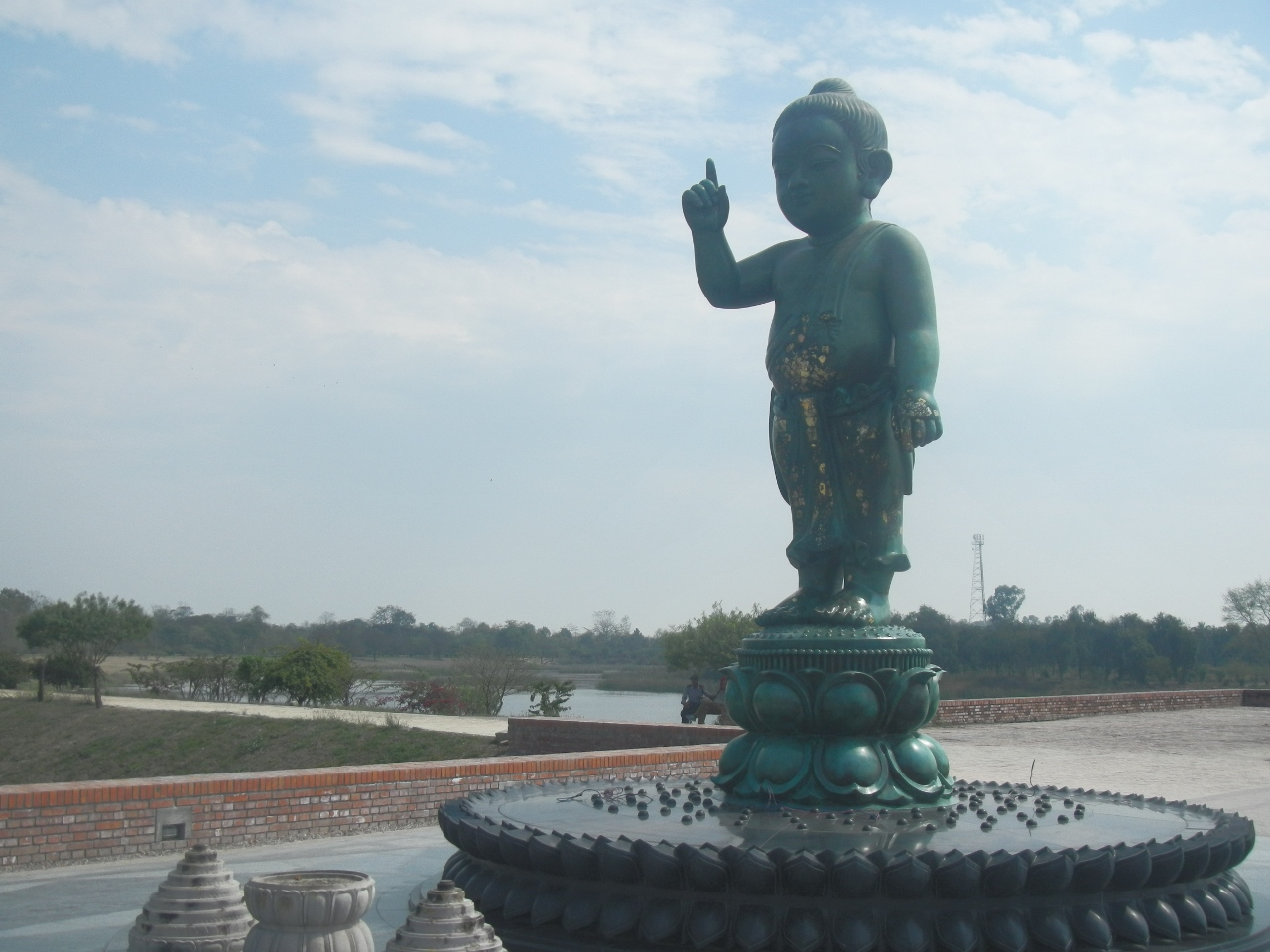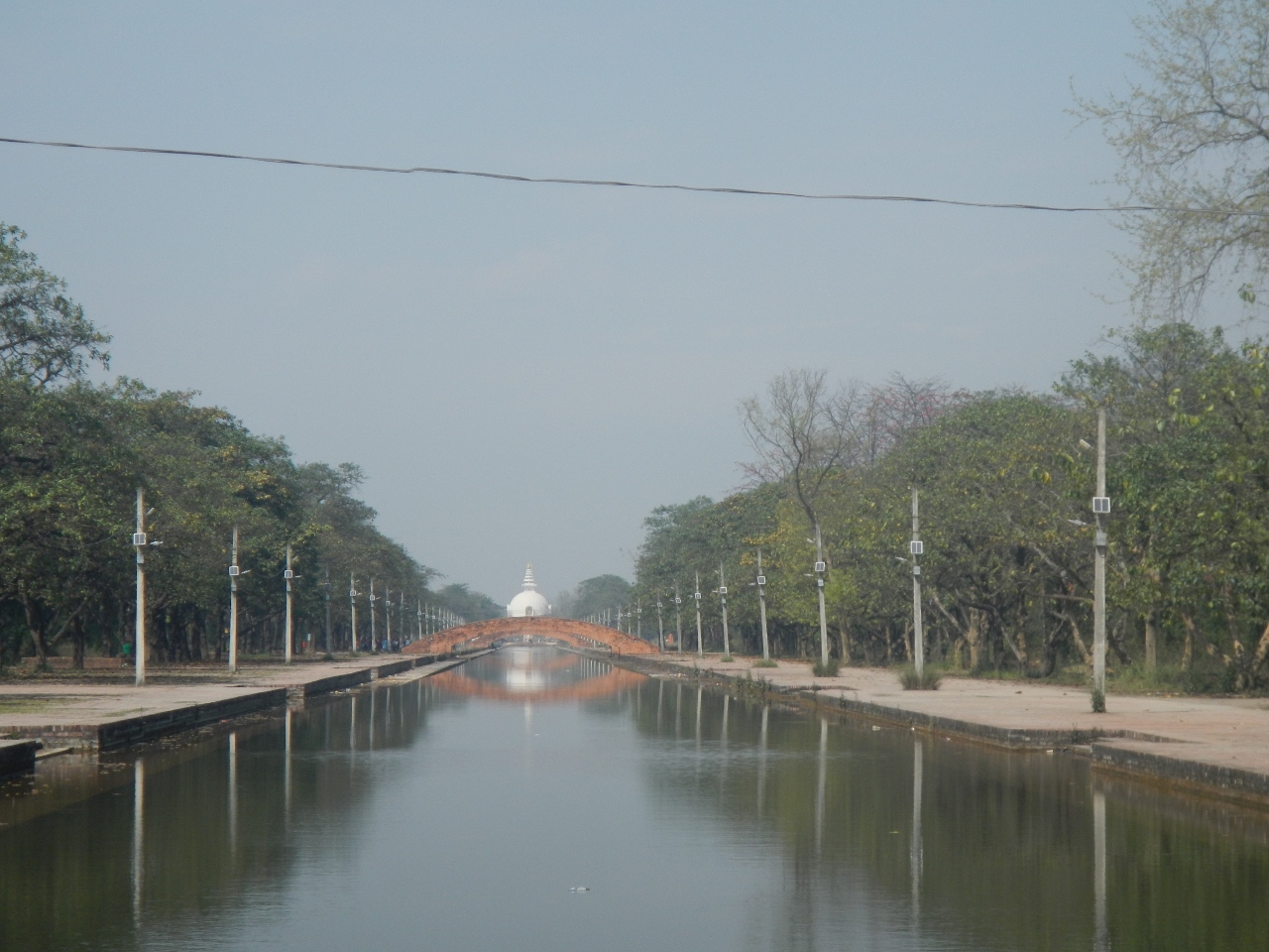 北に行くと平和の火があり、運河沿いを歩くと寺院地区になる。韓国、中国、ドイツ、シンガポール、フランスなどの国の寺院がある。さらに北に行くと誕生仏があり、もう新ルンビニ村だ。ここまで来ると日本山妙法寺の世界平和仏舎利塔が見える。