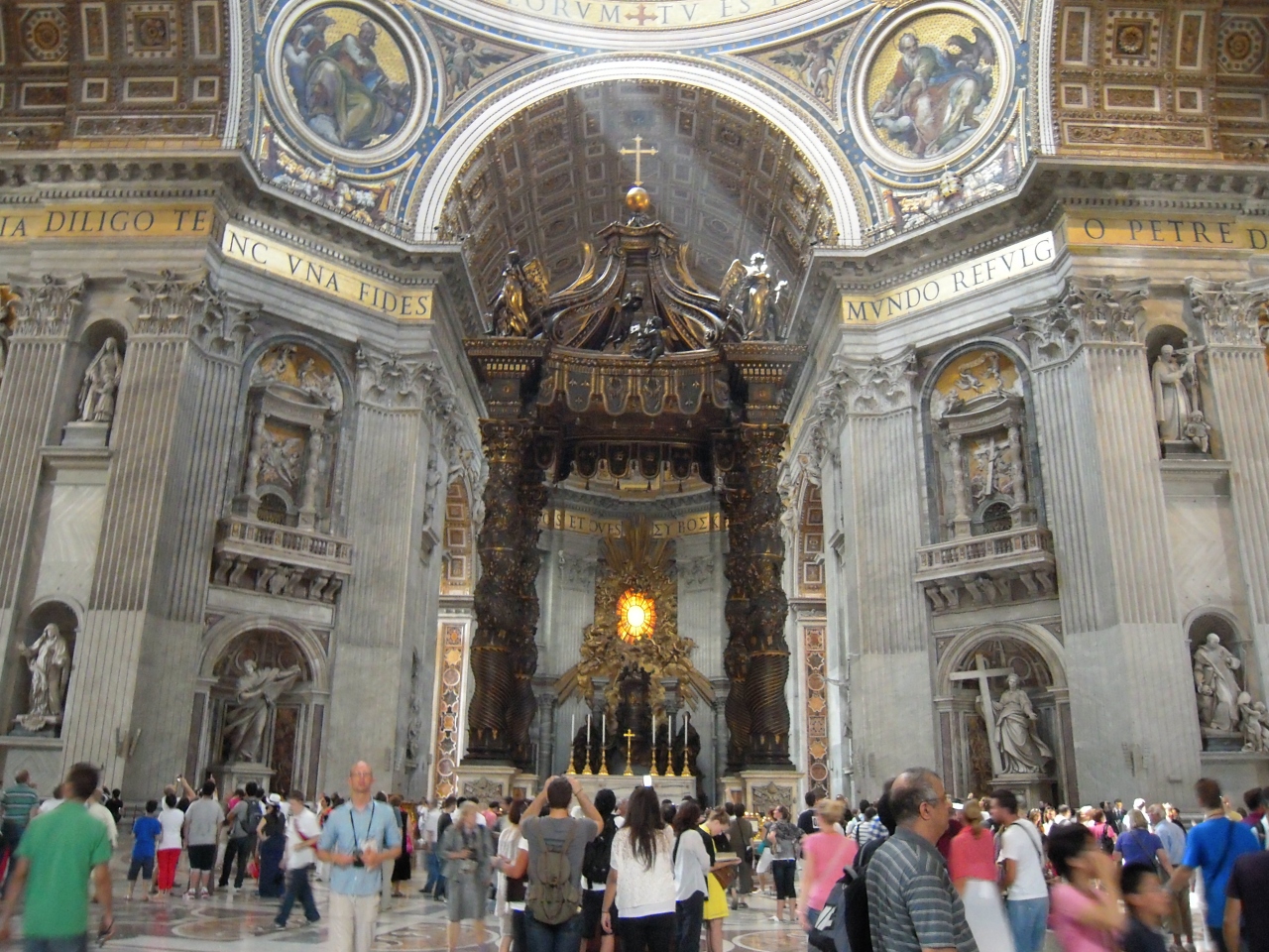 ローマの最終日にバチカン美術館とサン・ピエトロ大聖堂に行きました。広場を取り巻くように並んでいる列に並び、ようやく入場。中はやはりキリスト教の総本山だけあって、芸術的かつ巨大な空間でした。美術品の数々、天井画と天蓋の小窓から差し込む光は荘厳で、観光客で一杯なのに静謐な雰囲気を保っていました。死ぬまでに一度見ておくべき場所の一つなのかなと思います。