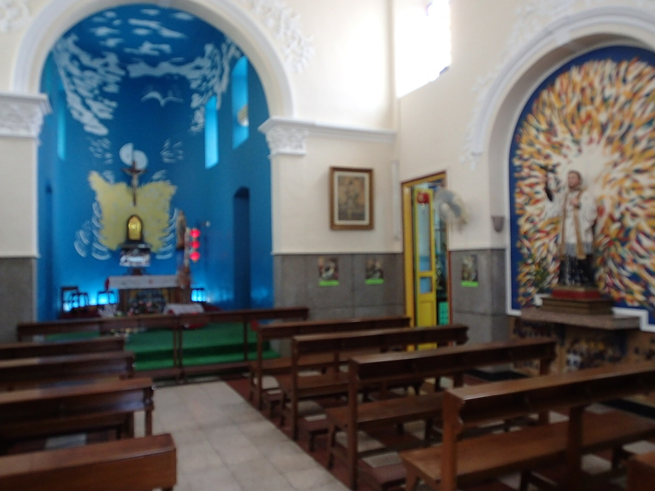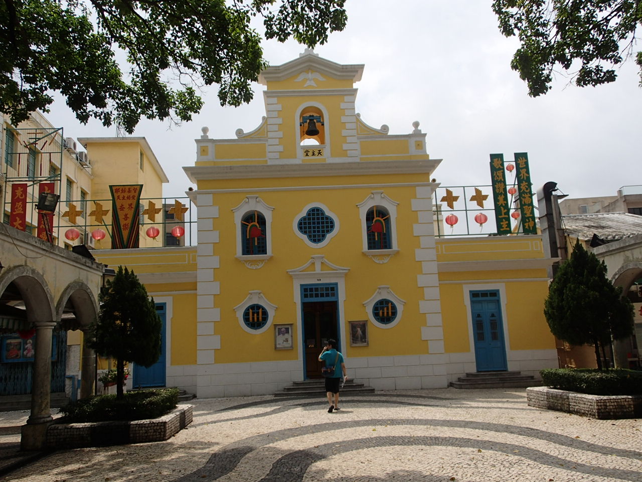 黄色の外壁と中に入ると綺麗な空色がとてもきれいです。