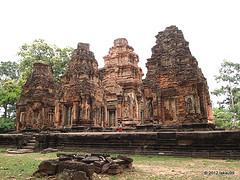 ロリュオス遺跡群の1つでアンコール遺跡中最古の遺跡らしい。中央にある6基並んだ祠堂は小さいながらも見事。その祠堂の前にある3体の聖牛ナンディンの石像も印象的です。規模は小さいけれど、他のアンコール遺跡とはどっか違う遺跡です。