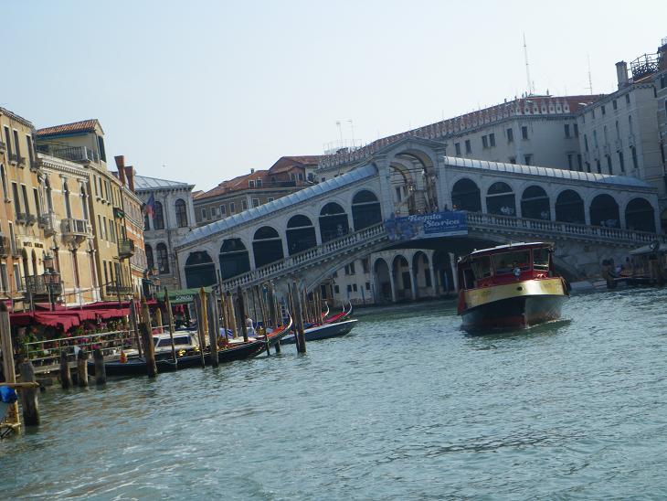 カナル・グランデに架かっている橋のひとつです。ヴェネチアには400本ほどの橋が存在するそうですが、その中で最も有名なものではないでしょうか。橋は屋根付きです。橋の上には土産物などの店が並んでいて、とても賑わっていました。