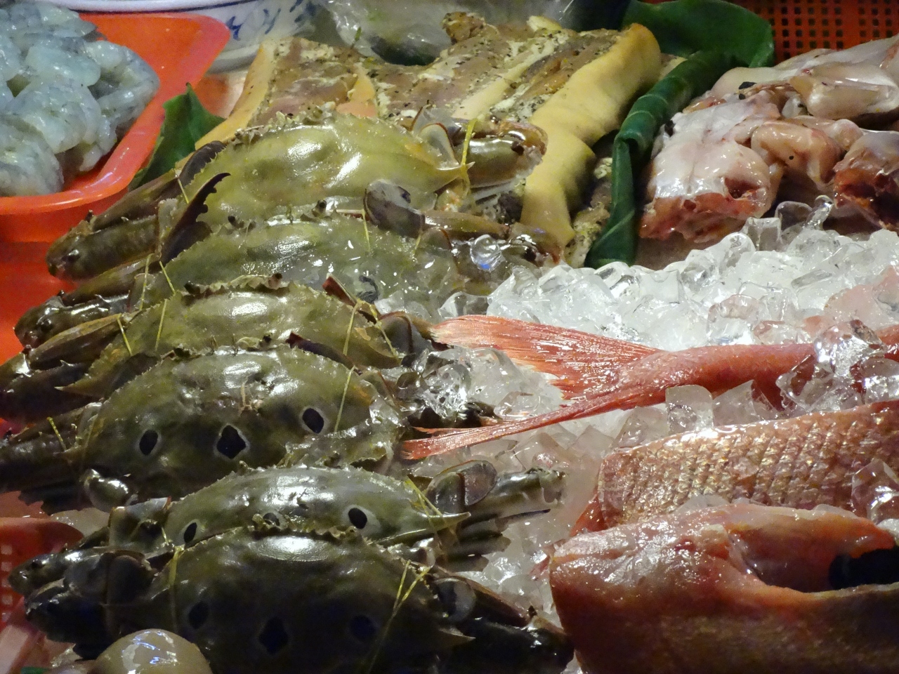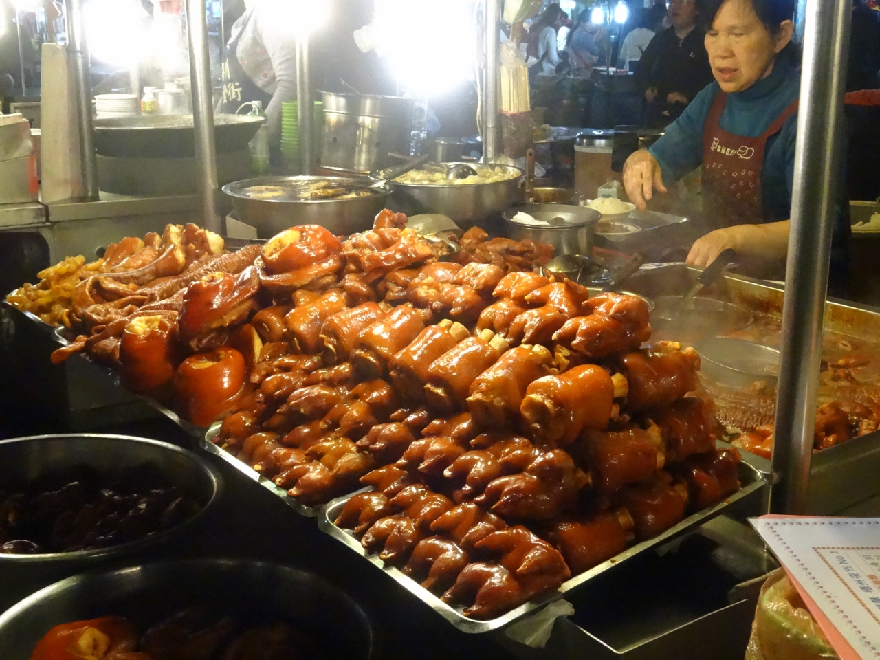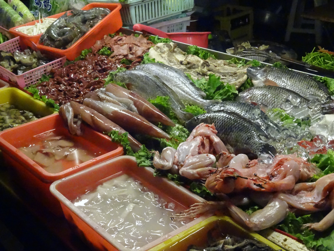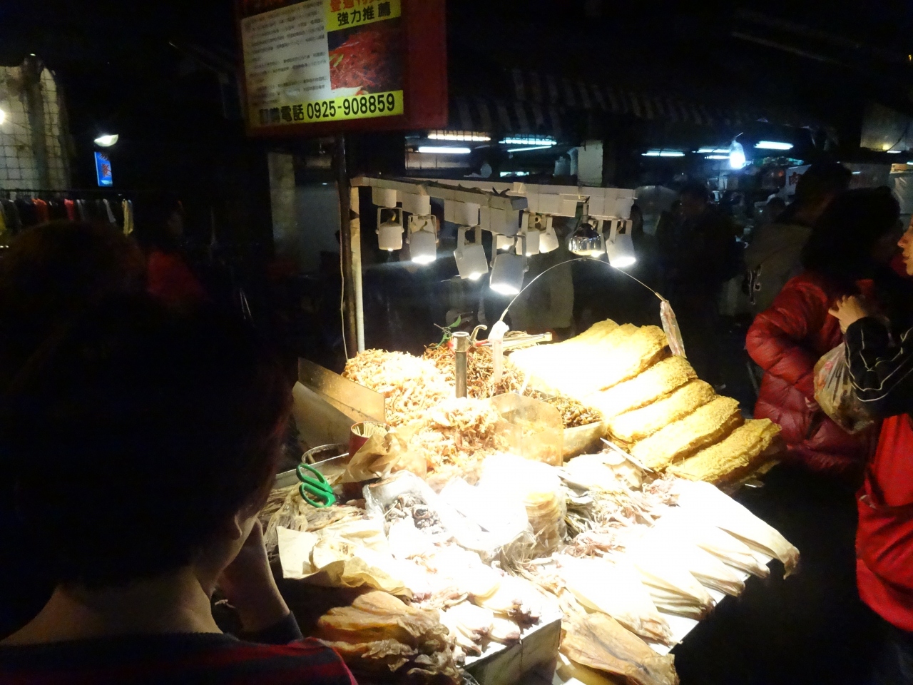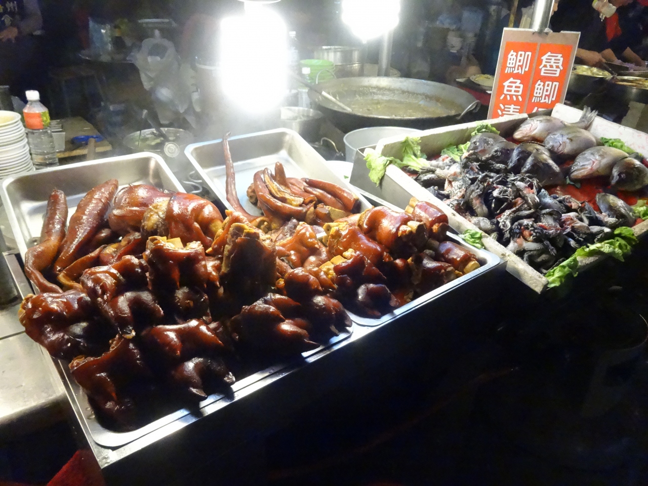 華西街に入ると、食べ物の店は、変わった食材の店が結構あります。