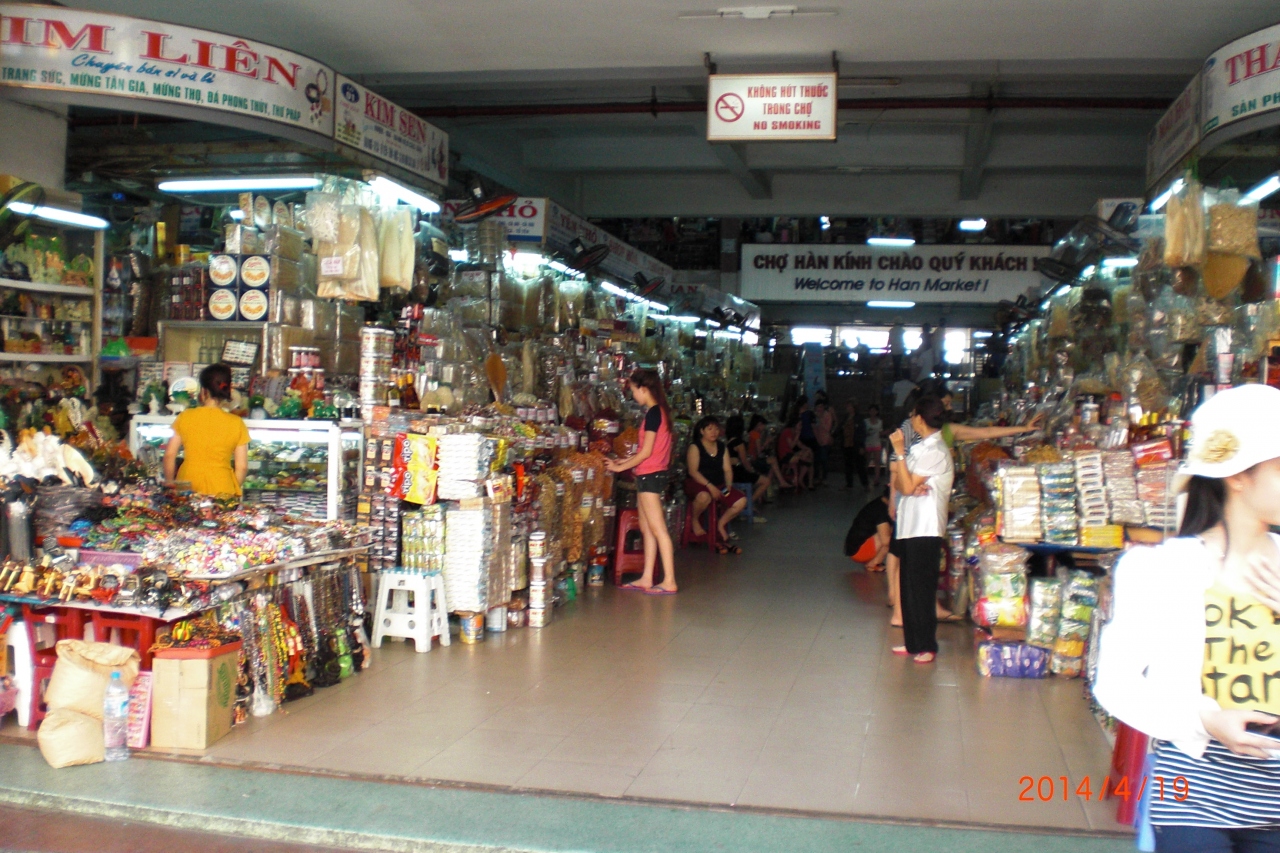 5月連休のフエ・ホイアン・ミトー遺跡観光のブリリアントホテル ダナンのそぐそばのハン市場に行ってきました。ベトナムは暑く市場は食べ物の混ざり合った匂いでくさかったです。風景は、日本にないもので異国情緒がありよいものでした。
