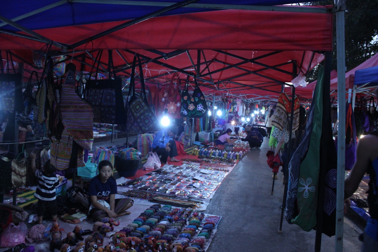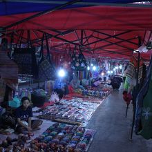 王宮博物館前の道路で夜にマーケットが開かれますが、日中でも小規模なマーケットがあります。ラオス名物の布の絵本などの手芸品、工芸品など、ラオスらしいお土産が揃えられる場所だと思います。売っているものは割高な感じがしました。