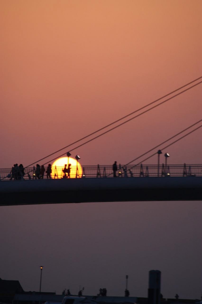 ここへは日没の写真を狙いに行きます。淡水駅から運河沿いを歩いてモーターボートを探します。ここから少し離れた橋へ行くためです。バスでも行かれますが、雰囲気を盛り上げるために使っています。橋の上から夕陽を撮るか、橋に夕日が掛かる場面を撮るかでポイントが変わります。ガイドブックは後者の方ですね。アベックの方は当然前者の方になります。後は日没まで雲が出ないことを祈るばかりです。
