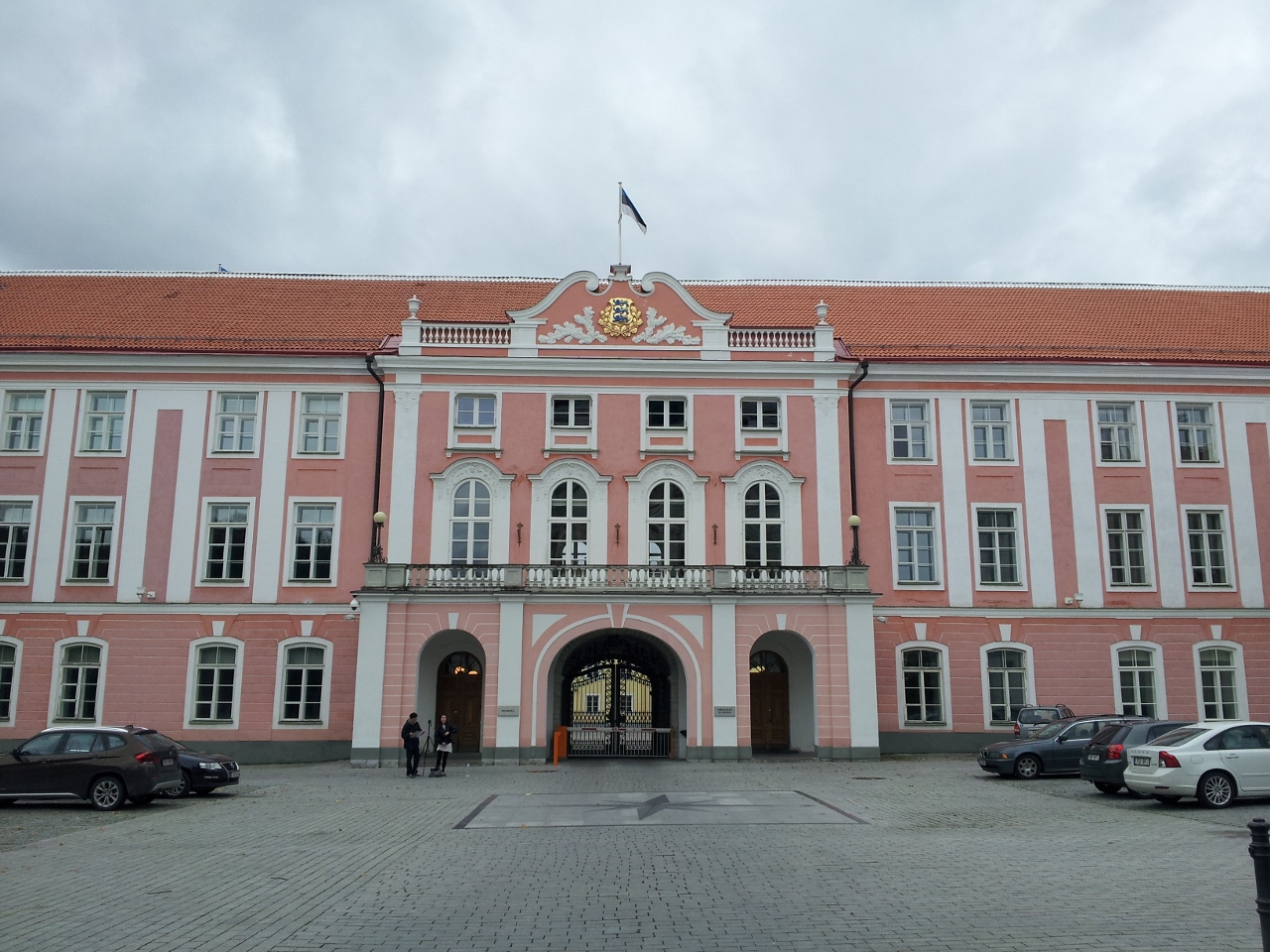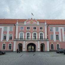 ピンク色が印象的なお城で、城壁や塔に囲まれて侵入者を阻むように佇んでいます。その外観は城というよりも、市庁舎や大学かといった様相です。現在は議会などで使われているようで、残念ながら中に侵入できません。