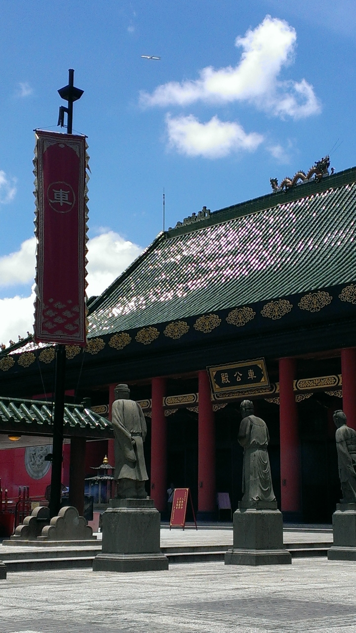 香港空港へ向かう着陸機は、通常の天候なら沙田→葵涌→チュン湾上空を経て空港へ向かいますが、天気の良い日はここのお寺の後方に、小さく見える程度ですが、数分おきくらいの割合で着陸機の姿を見ることができます。