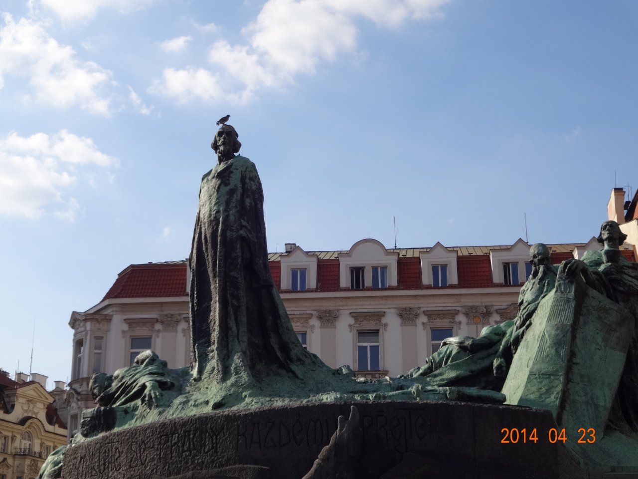 ヤン・フスの像は、想像より大きく、天に向かって、すくっと立っています。