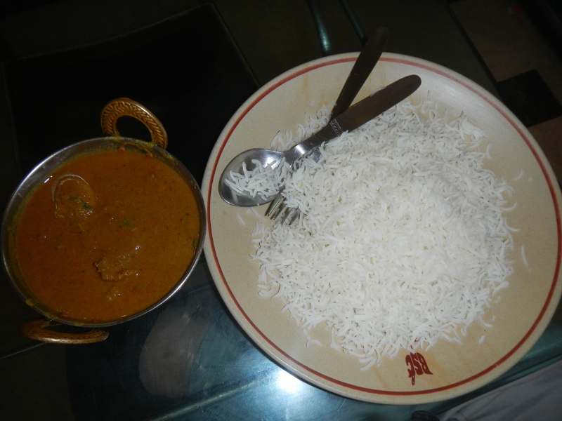 サダルストリートにあるレストラン。いつも各国からの旅行者で賑わっている。この時はこのレストランがWIHIが使えることを知らずにいたが、1年後再訪した時には使った。この時はチキンカレーを食べた。105ルピーだった。(現在は値上がりしているかもしれない)味の方は日本人にも違和感のない食べやすいものだった。