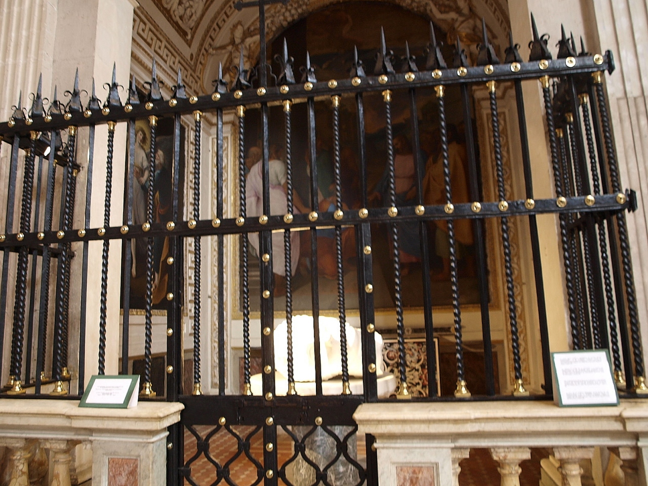 入口のブロンズ扉と、教会内部にある現代アート作品は近年取り付けられたそうで、イゴール・ミトライという人の作品の様です。