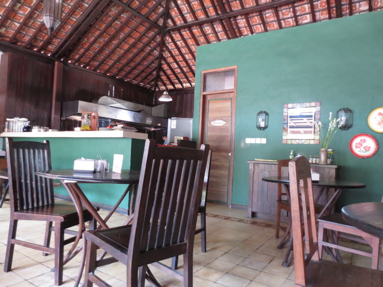 暑さの中自転車を漕いで行ってみました。1階はほぼ満席でしたが2階はがらがらでした。窓際は1階の屋根の照り返しが強烈で暑く、奥は風が入らず暑い、だから皆1階にいるのでしょうか。料理は観光客向けと聞いていましたが結構辛めでした。それほど美味しいとも思わず「ふ~ん」と言った程度です。客層はベジタリアン的な人等そういった系統の人に人気があるようです。