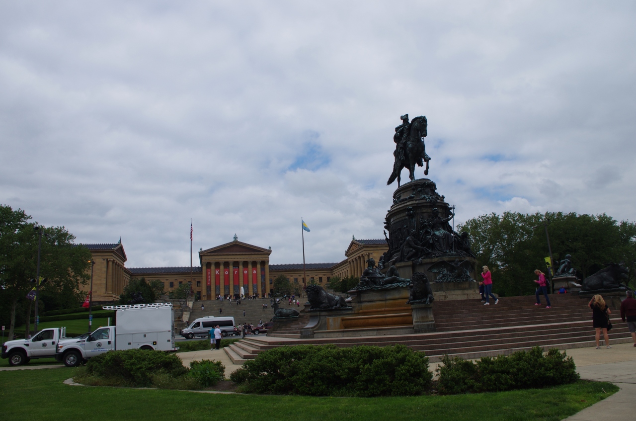正面玄関の前、道を挟んだところにあるイーキンズオーバルにはワシントンモニュメントがあり、芸術的な雰囲気を高めるのに一役買っています。