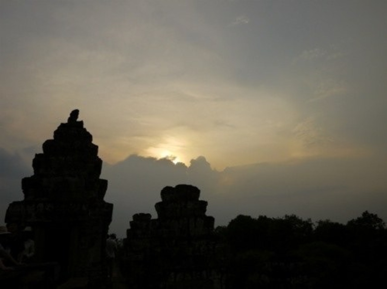 夕日鑑賞スポットです。アンコールワット近くの像乗り場から、少し登山して行くのですが、高尾山のような印象でした。登山口は17時くらいで閉まるようでした。頂上のエリアは人数を制限しているのか、行列ができていましたが、待っていれば登れます。夕日が見られるかは天気次第。わたしたちが訪れた日は残念ながら雲がかかっていました。