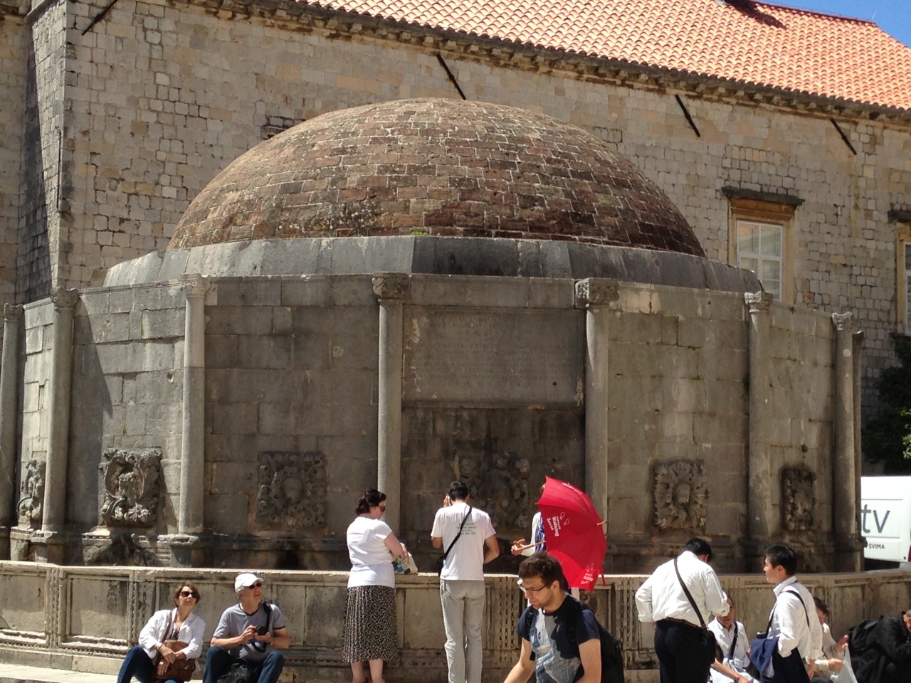 アイスを食べるときの椅子として人が噴水の縁に座っていました。何となくさびれています。名所には見えませんでした。水をペットボトルにくんでいる人もいましたが暑くてバテ気味だったので心配で飲みませんでした。暑くてよくアイスを食べて手に着いてベトベトした時に手洗いの場として便利でした。
