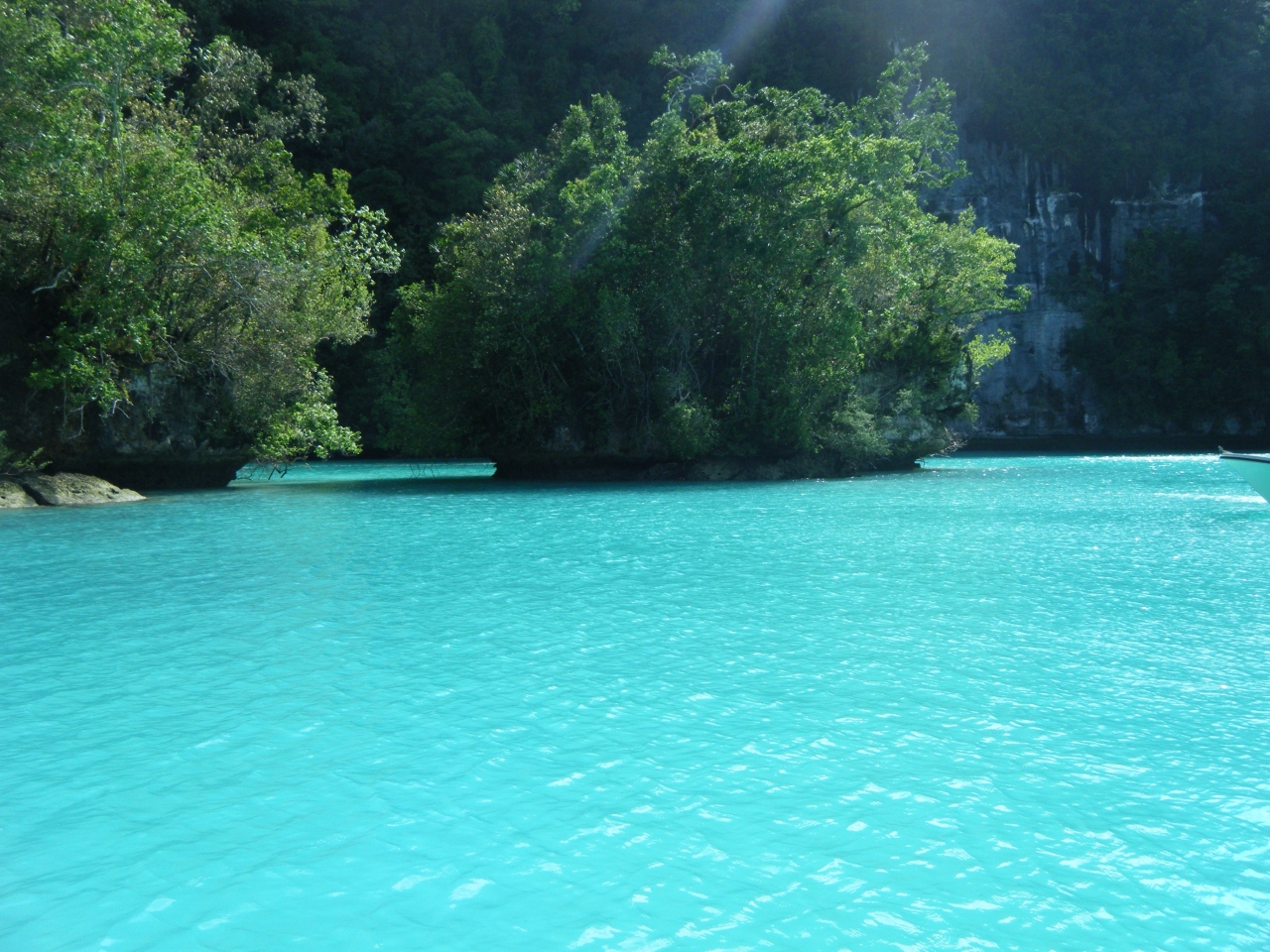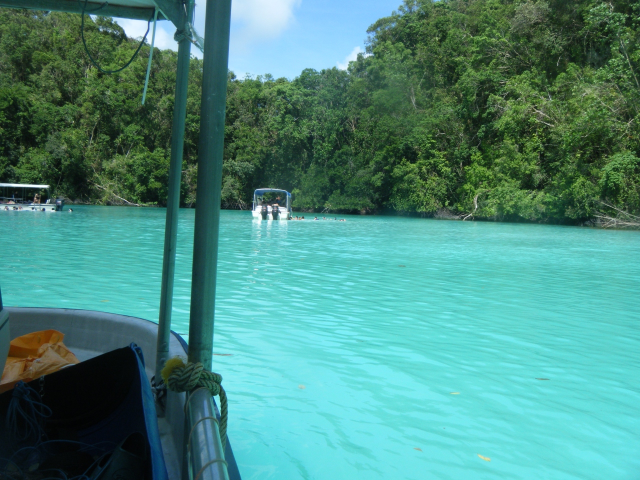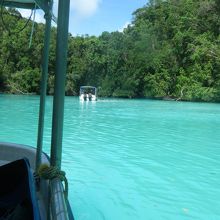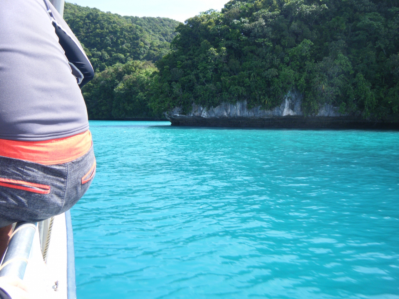 ミルキーウェイの入江に入ると、パラオの真っ青な海の色から乳白色の綺麗なブルーに