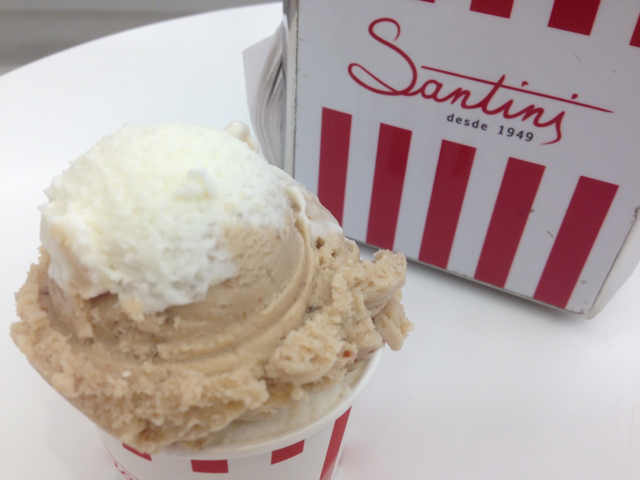 バイシャ地区でも少々坂を上がったエリアには若者向けの店が集まっています。表通りからも明るい店構えは目を引きますね。内装も明るく奥に広い店内。ジェラートは先に代金を払うイタリア式です。小さいサイズは2種選べて2.6ユーロ。季節限定のマロンが美味しかったです。