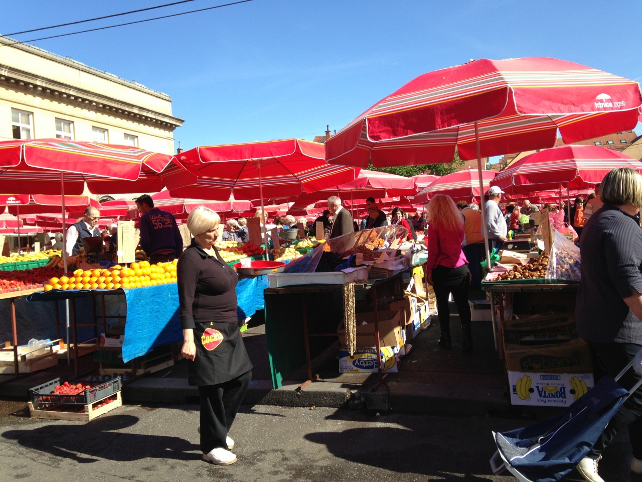 16時ぐらいには終了です。似たようなお店が沢山でした。クロアチアハート装飾グラスが60クーナで売られている一方で10クーナからお土産マグネット(小さいハートにペインティング)が売っています。ドブロブニクのお土産屋さんではマグネットは50クーナ(値段を見て2つ売りかと思いました。。。)前後で売っていたのでかなりお買い得な市場でした。