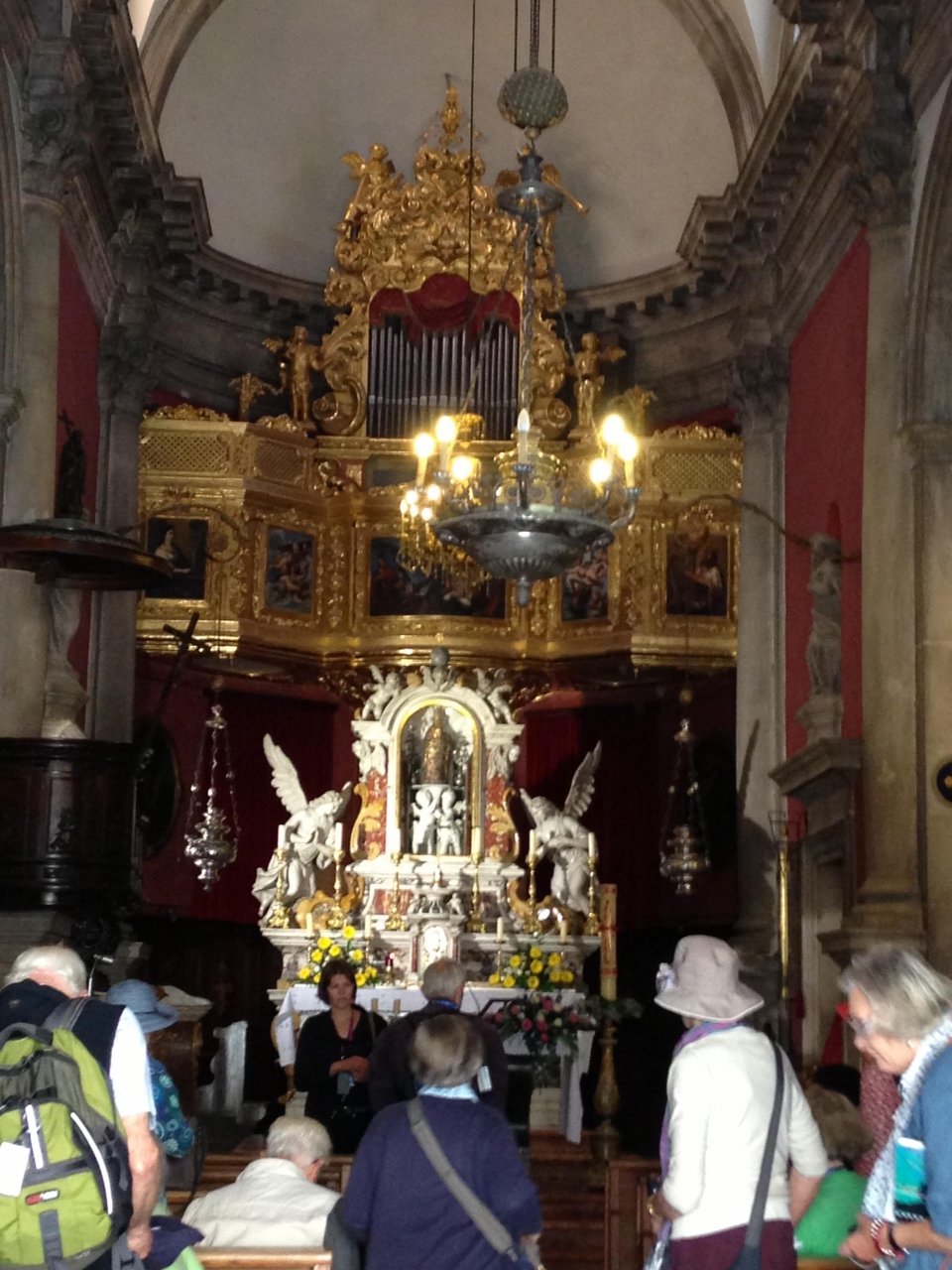 ステンドグラスの絵が近代的でした。写真は不可でした。入口から見ると祭壇が黒っぽくて日本のお寺を思い出しました。祭壇に向けられたライトアップの仕方が上手かったです。ドアの前に数段階段がありルジャ広場を前にするバルコニーみたいでした。