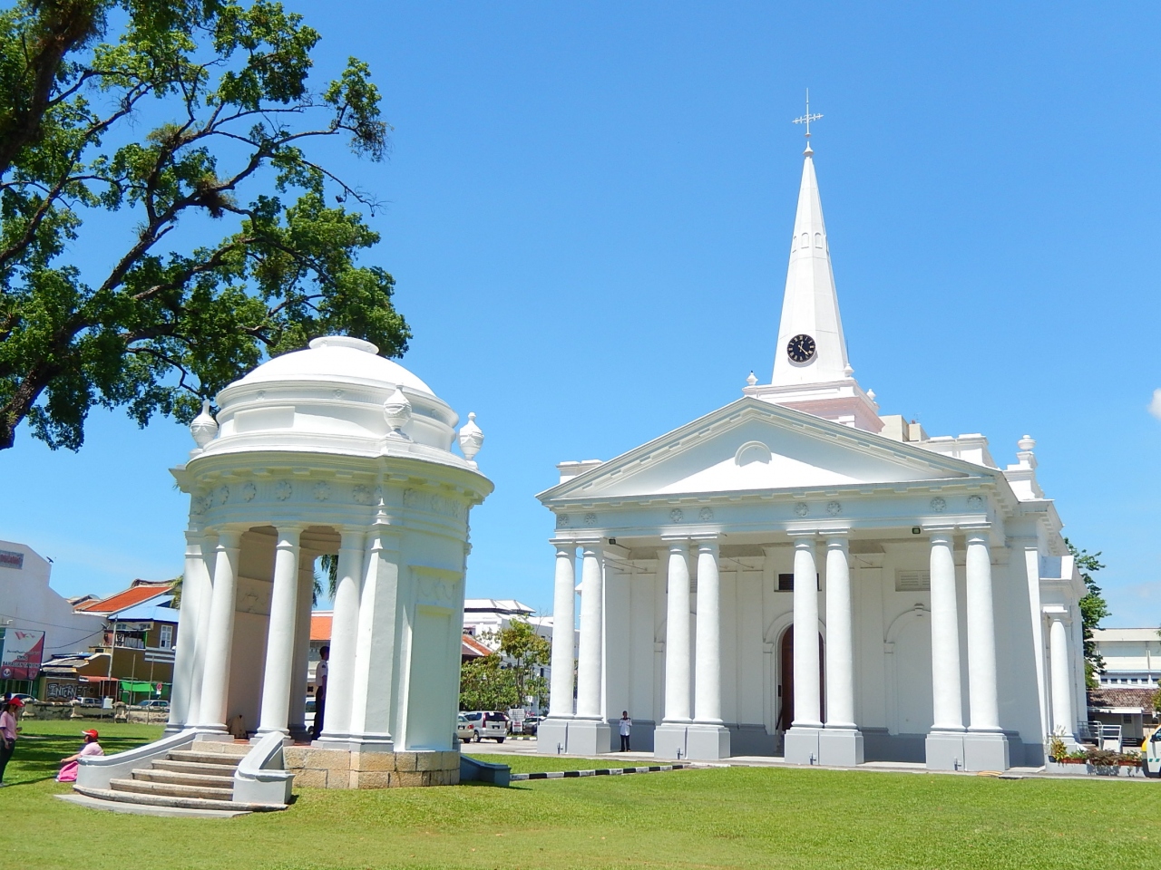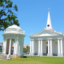 セント・ジョージ教会は1818年に建築された東南アジア最古のイギリス教会で、真っ白な尖塔と白亜の外観が印象に残る美しい教会だ。教会の前に広がる芝生の緑が美しさをより引き立てている。教会の前にある白亜の小さなドームの中には、ペナンの発展の基礎を築いたと言われるフランシス・ライトの功績を称える碑があった。当時のクダ王国と軍事援助することと引き換えにペナンを賃貸したにもかかわらず、約束を違えて結局ペナンを占領した人物なので、自国にとっては功労者といえるのだろう。