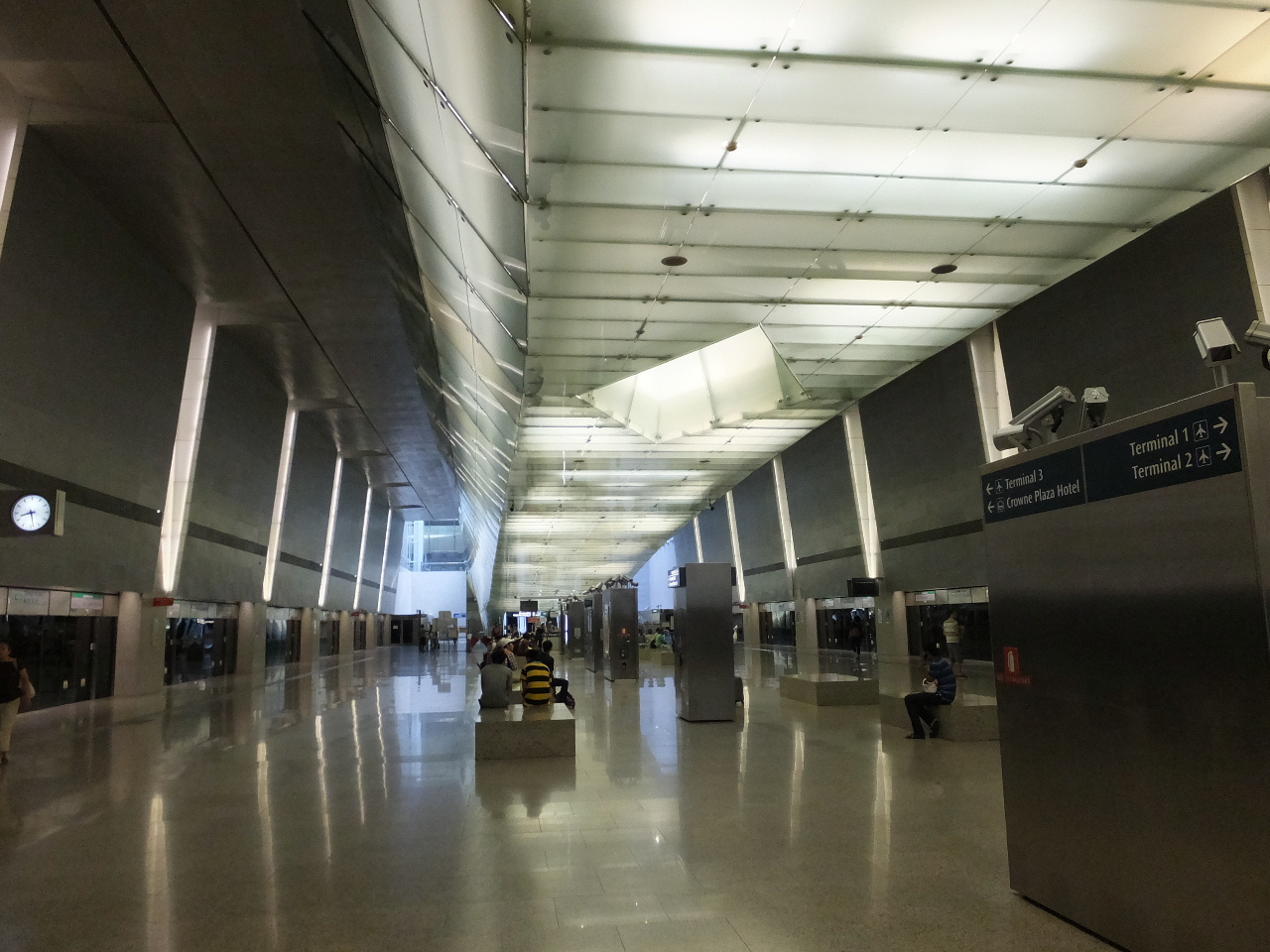 空港の人気投票でいつも上位にランクされるチャンギ空港は、ターミナルが3つに分かれていてかなり広い空港です。各ターミナルは制限エリア内外で独立してスカイトレインで結ばれているので移動は楽です。また、T2・T3の地下にMRTの駅が接続しているので便利です。