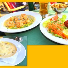 スカンピと小エビのクリームコロッケとムール貝のグラタンと魚介で攻めてみました。