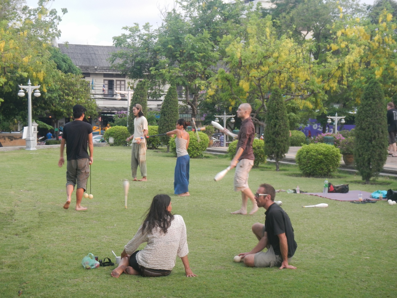ジャグリングの練習をする人達、インストラクターの指導でエアロビクスを楽しむ人達、バドミントンをやる人達と楽しみ方は人それぞれだ。私はベンチに座ってボーとしているのが好きだ。